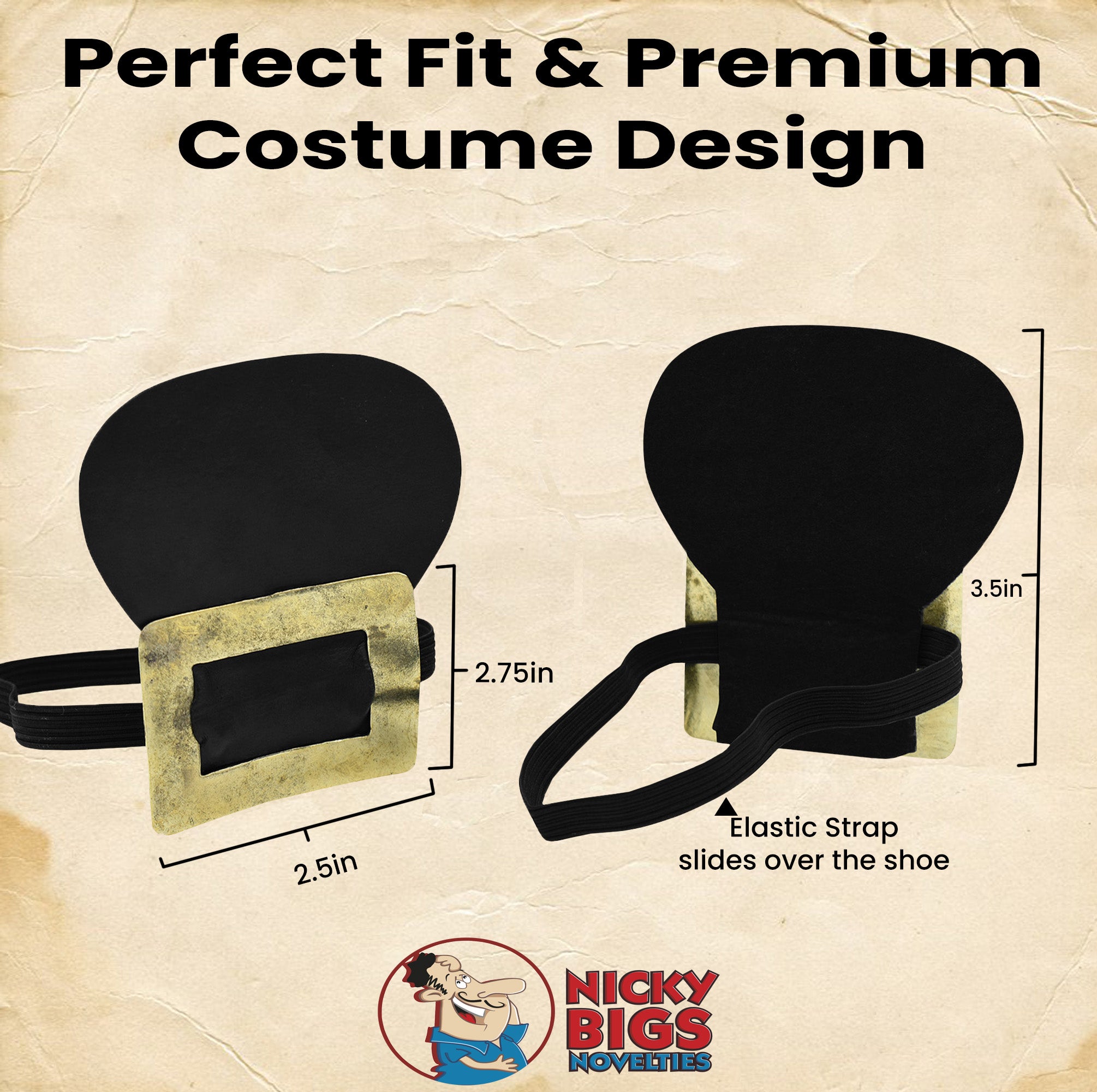 - FIT FOR A VARIETY OF SHOES: Each set includes 2 boot covers that measure 3.5 inches tall and 3.38 inches wide. The gold-tone buckles measure 2.5 inches long and 2.75 inches tall, making them a great addition to your costume for various themed events.