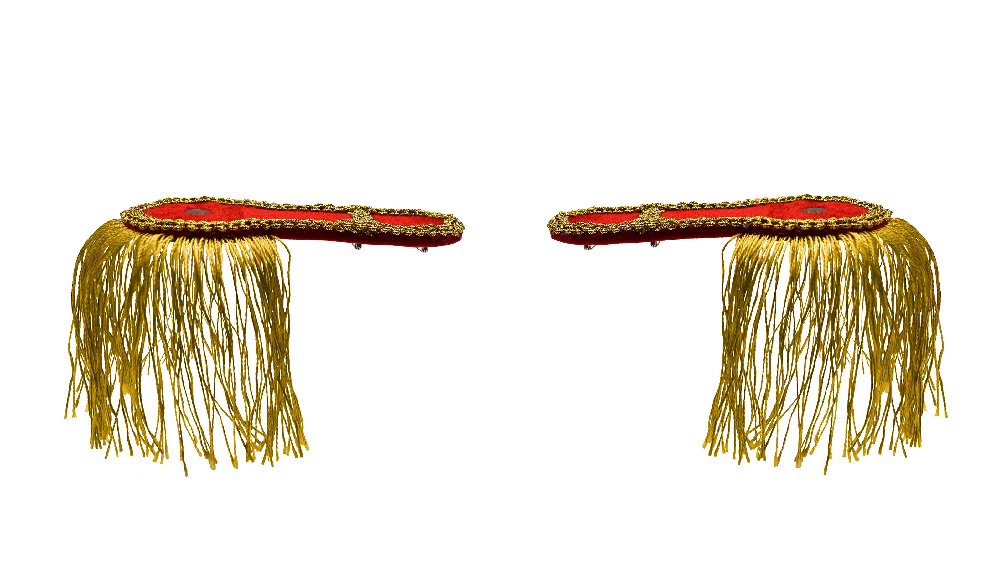 - TRANSFORM YOUR OUTFIT: Elevate your costume with these eye-catching Ringmaster Shoulder Epaulets. Available in black or red, these boards feature gold trim, faux buttons, and tassels. Great for adding dramatic flair to any shirt or jacket.