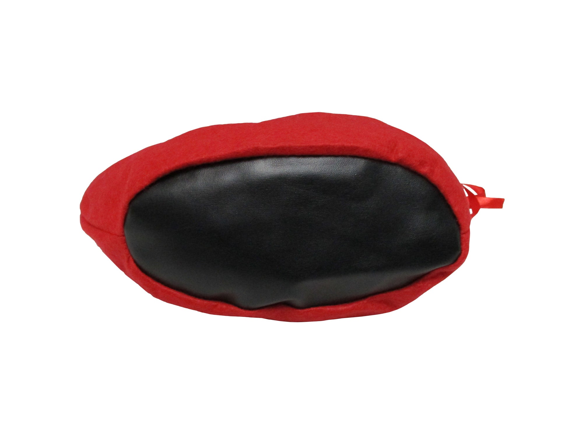 Complete your Santa's helper costume by adding a pair of festive elf shoes. Red felt elf shoes are trimmed in green with red and green pom-jingle bell accents and curled toes. They are a perfect accessory for a jovial little elf! One size fits most. Fits up to 10.5" Smaller feet may allow the person to wear over shoes Total length approximately 14 inches long and 8.5 inches tall