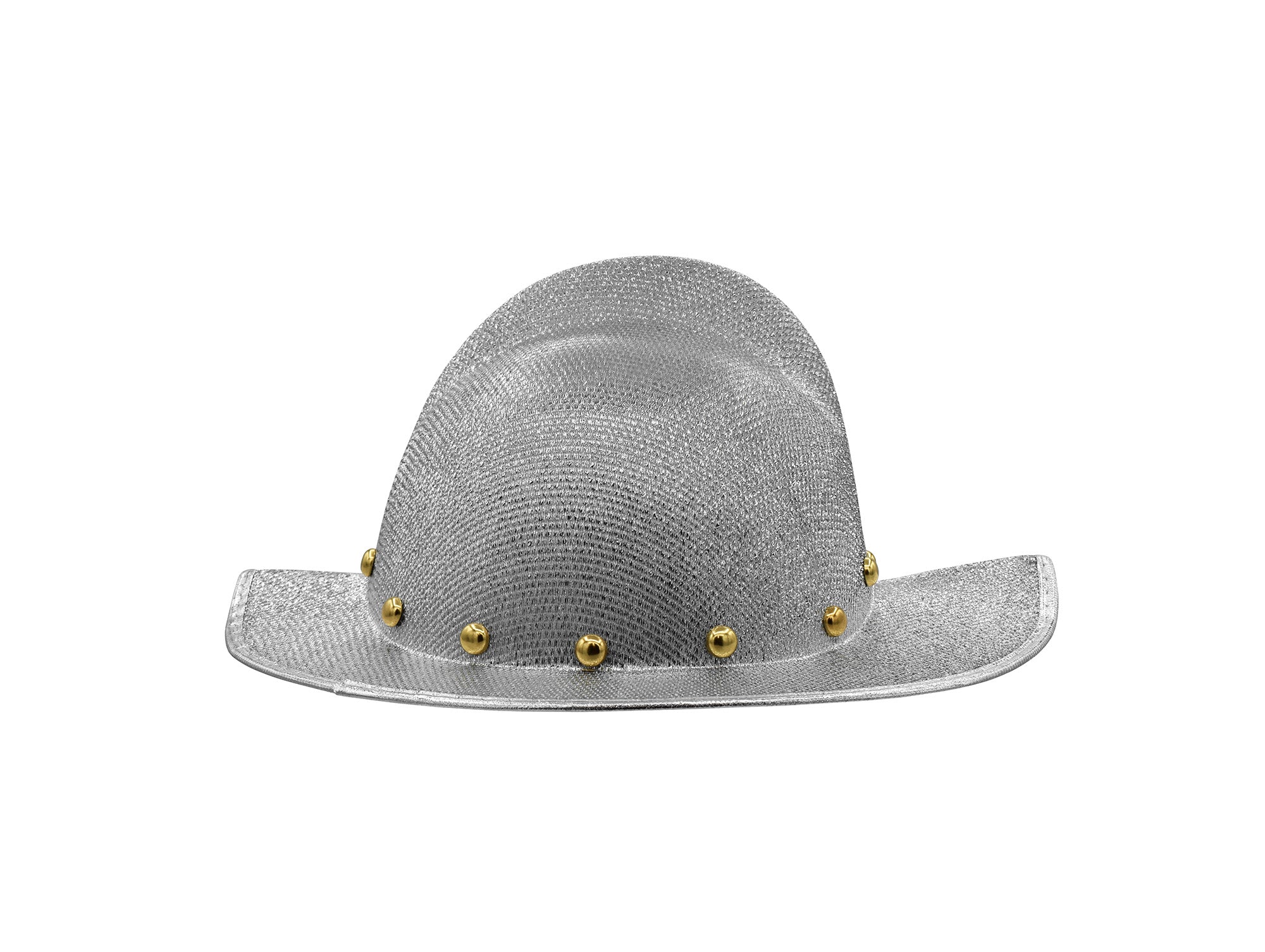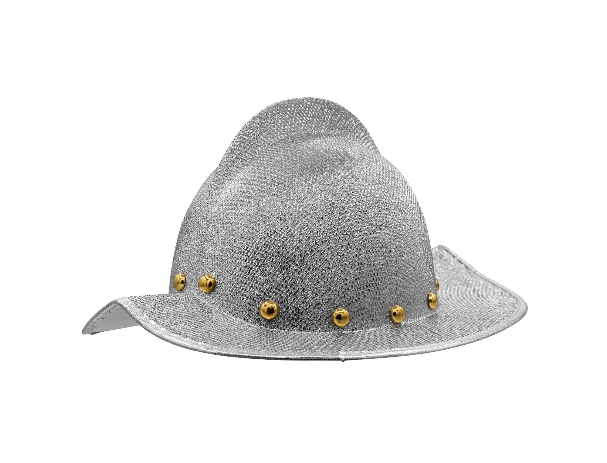 This season complete your out fit with this Nicky Bigs Novelties Silver Conquistador Helmet. Perfect for Halloween, Cosplay, Theater, Reenactments and more! Lightweight and easy to wear. This historical styled hat stands about 8 inches tall and 13.5 inches long. The cap is about 11.25 inches wide. Hat is made from stiff felt and covered with silver overlay to give it a metal appearance. Sized approximately 57 cm or 7 1/8 in a hat size. Great for Men, Women, and teens! For Ages 14 and Older