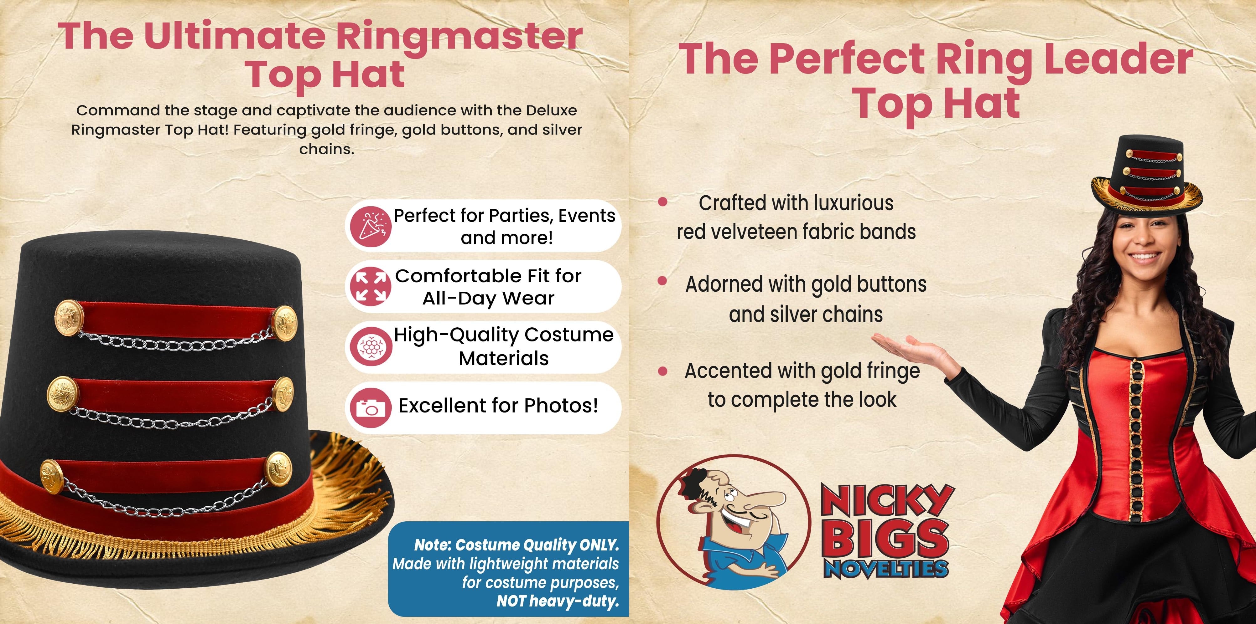 Adult Deluxe Circus Ringmaster Top Hat Ring Leader Halloween Toy Soldier Costume