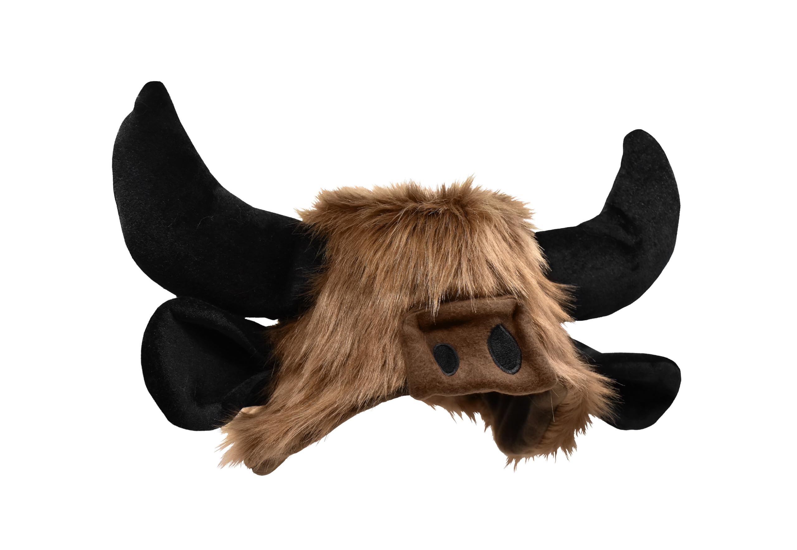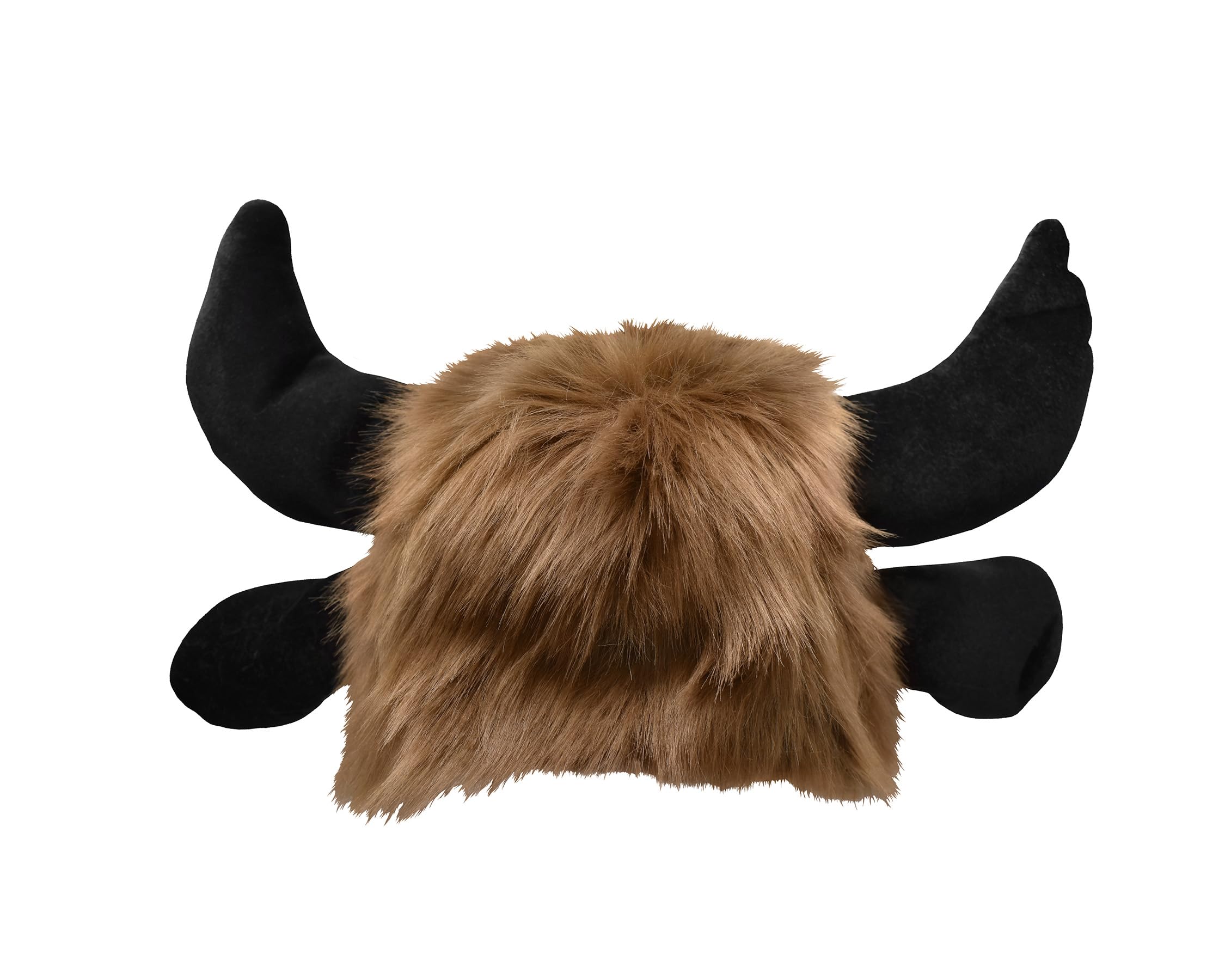 - Fun Adult Furry Bison Buffalo Hat. Each farm animal hat features black horns and black ears. Use for barbarian costume or casual wear winter hat.