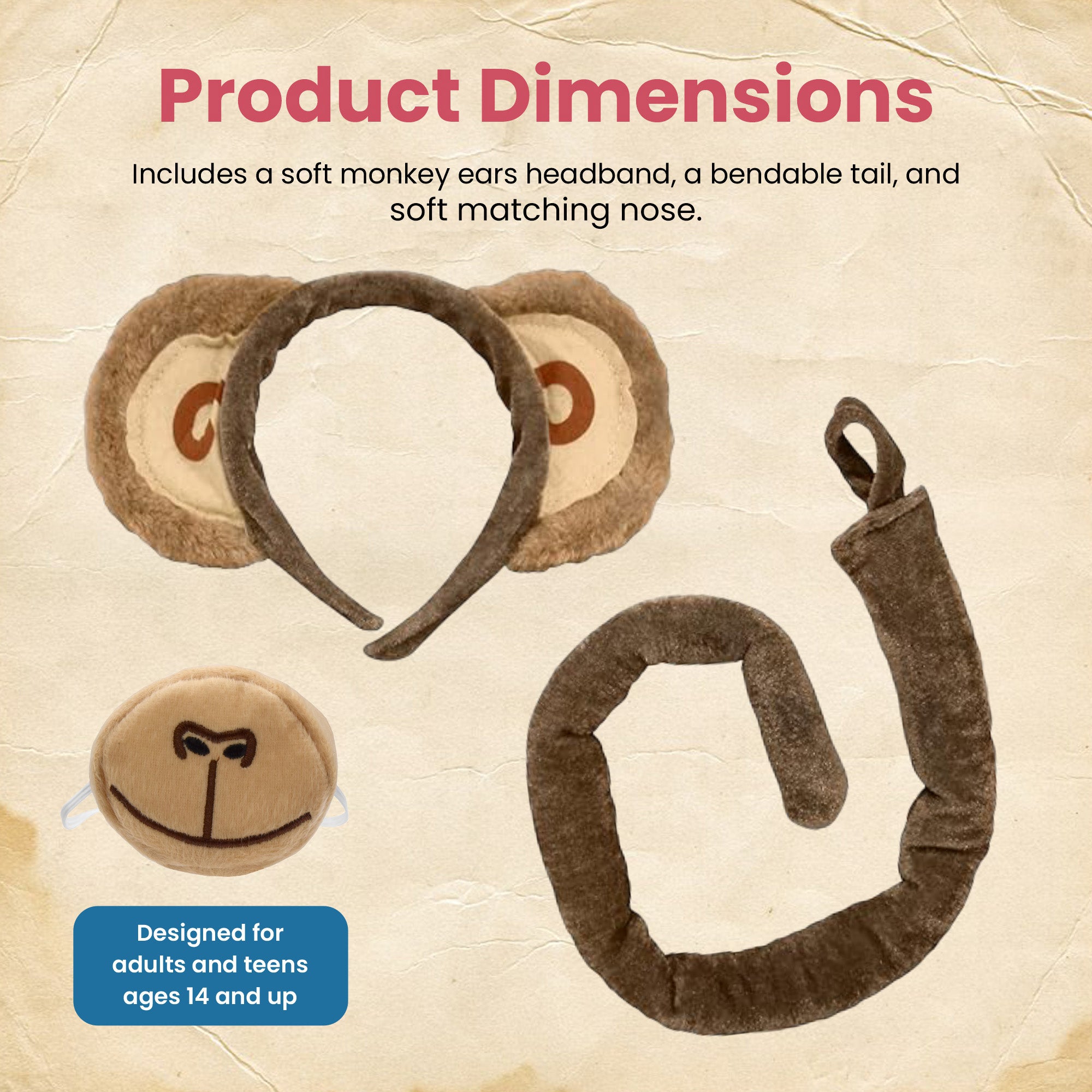 Introducing the Nicky Bigs Novelties Monkey Headband, Tail and Nose Set, the perfect accessory for your next costume event. This 3-piece set features a monkey ear headband, tail, and nose, making it a versatile choice for adults. The monkey set gives a fun, playful vibe to any outfit. The monkey tail is soft and bendable, allowing you to customize your look to match your playful spirit. This monkey costume accessory is lightweight and comfortable, ensuring that you can enjoy your event without any discomfort. The monkey headband is also adjustable to fit most head sizes. The brown monkey ears and tail are made from high-quality materials, ensuring long-lasting use. With the monkey tail and ears adult set, adults can also join in the fun. The monkey ears headband adult set is perfect for costume parties, Halloween, or any event where you want to stand out. For women, the monkey ears women set can be a fun and unique addition to your wardrobe. It can also be a great gift for anyone who loves monkeys. A perfect set for anyone looking for a fun and unique costume. The monkey tail costume is a great way to add a playful touch to any outfit. The Nicky Bigs Novelties Monkey Headband and Tail Set are not just costume accessories. They are a fun and playful way to express your personality. Whether you are dressing up for a costume party, Halloween, or just for fun, the monkey set are sure to make you stand out. If a smell persists on the nose, wash with mild soap and warm water. For ages 14 and older