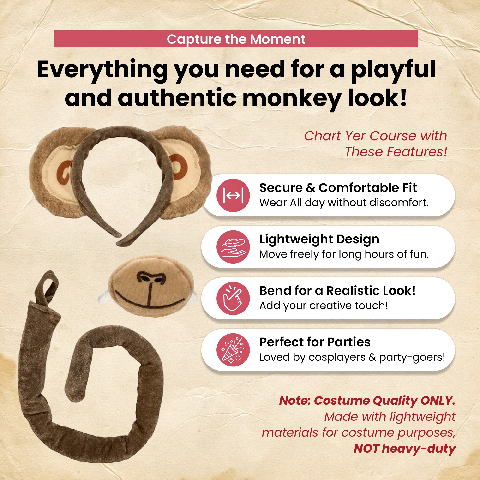 Adult Monkey Animal Costume Set Ears Headband Tail Nose Halloween Accessory Kit