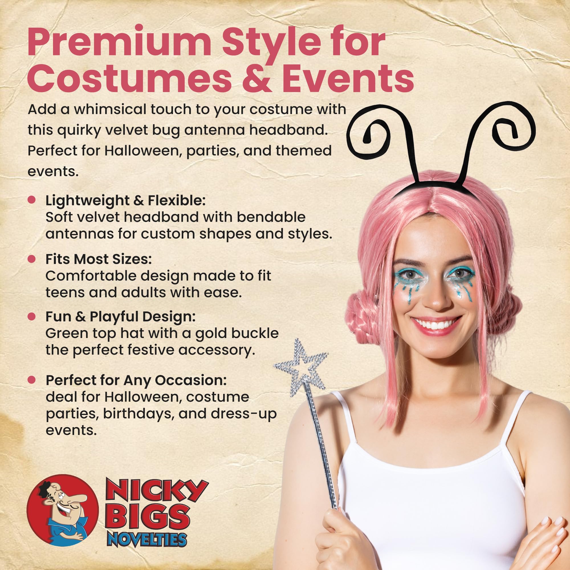 - CUSTOMIZABLE ANTENNAE FOR UNIQUE STYLES: Bend, curl, or straighten the antennae with the built-in wire structure to create a look thats truly yours. From lady bug costumes to bug costume ideas, this flexible antenna headband is perfect for DIY cosplay or playful themed events.
