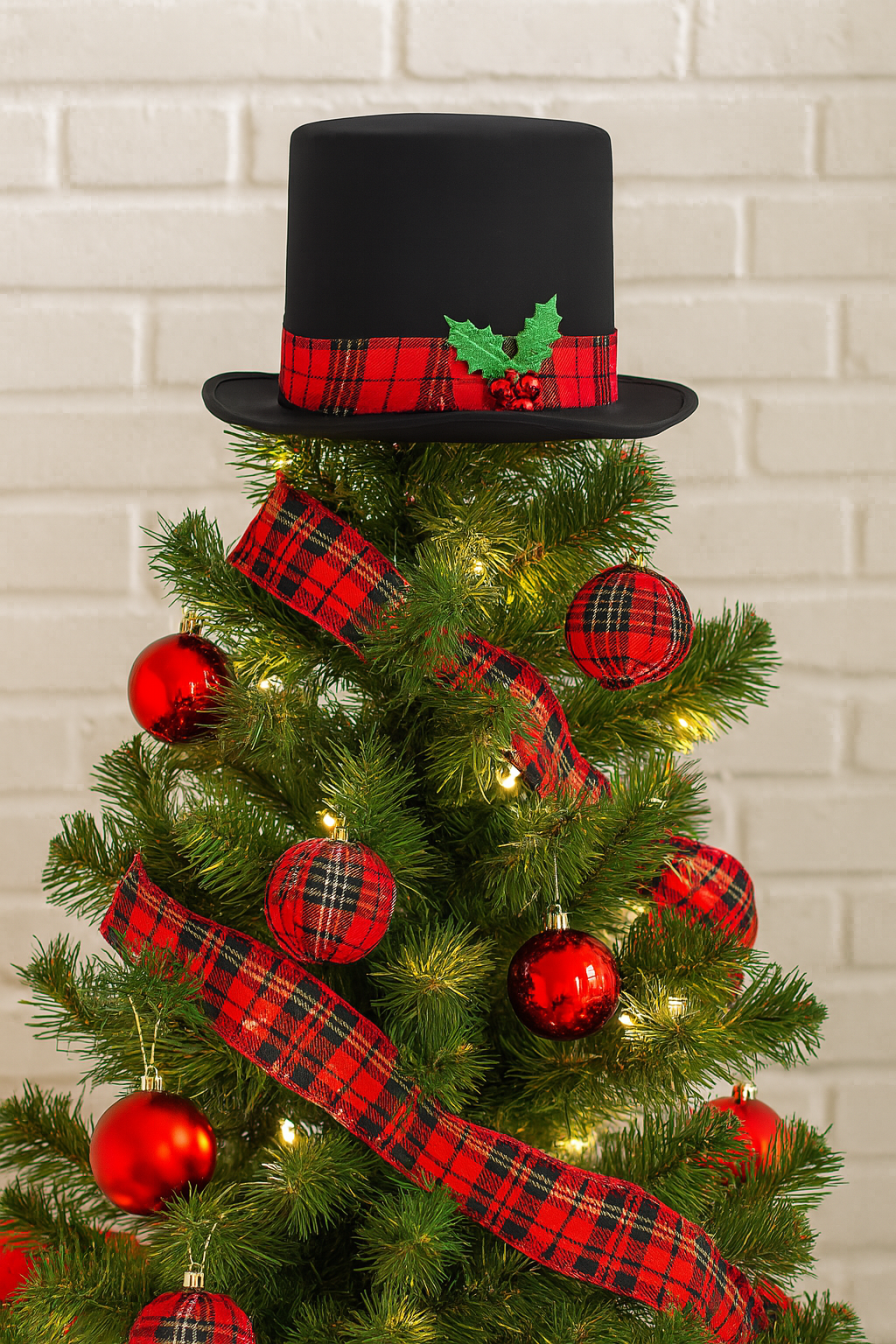 - Festive American-Made Design: Celebrate in style with this Nicky Bigs Novelties Snowman Top Hat—it features a red plaid flannel-style band, festive holly & red jingle berry accent, and sleek black satin finish, perfect for caroling, ugly sweater parties, holiday photo ops, or topping your Christmas tree with flair!
