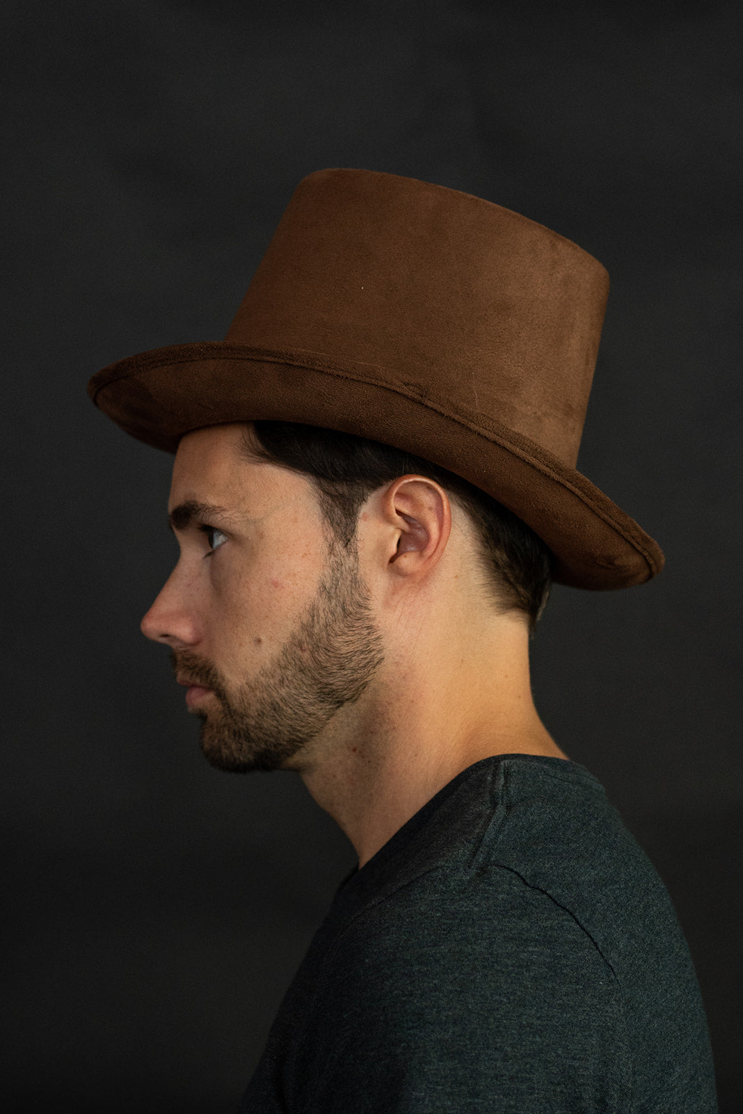 Deluxe 6" Faux Brown Suede Top Hat Steampunk Coachman Adult Costume Accessory