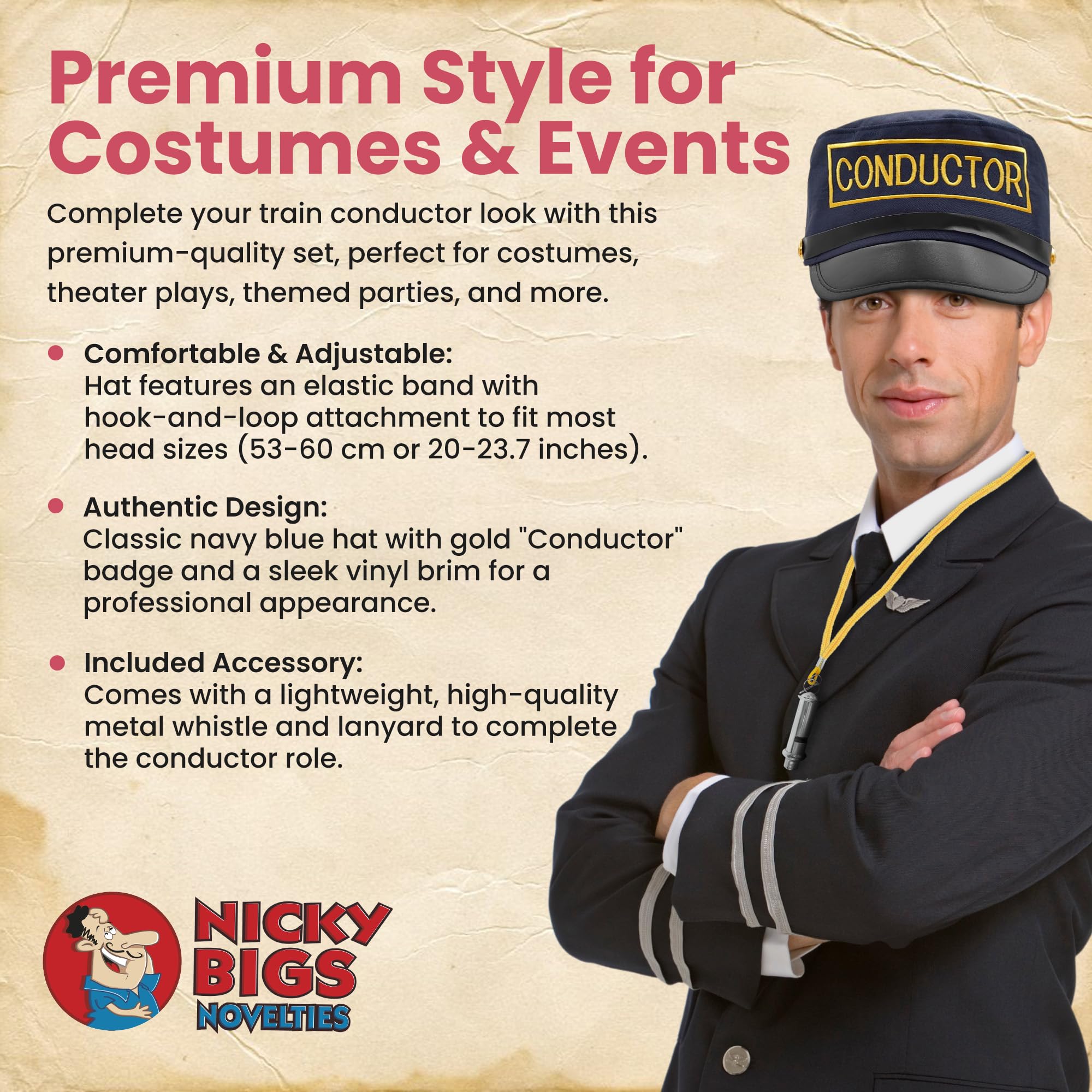 - VERSATILE FOR MULTIPLE OCCASIONS: Perfect for adult train conductor costume party, Halloween, costume parties, theater performances, and Christmas Polar Parties, this adult train conductor hat themed party hat and whistle set enhances a wide range of costumes and themed events. Its also ideal for anyone looking to channel the spirit of a train conductor at any time of the year. Make your train hat dress up stand out at any occasion.