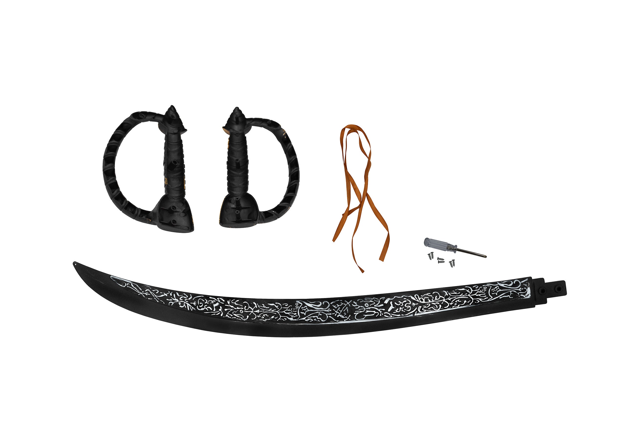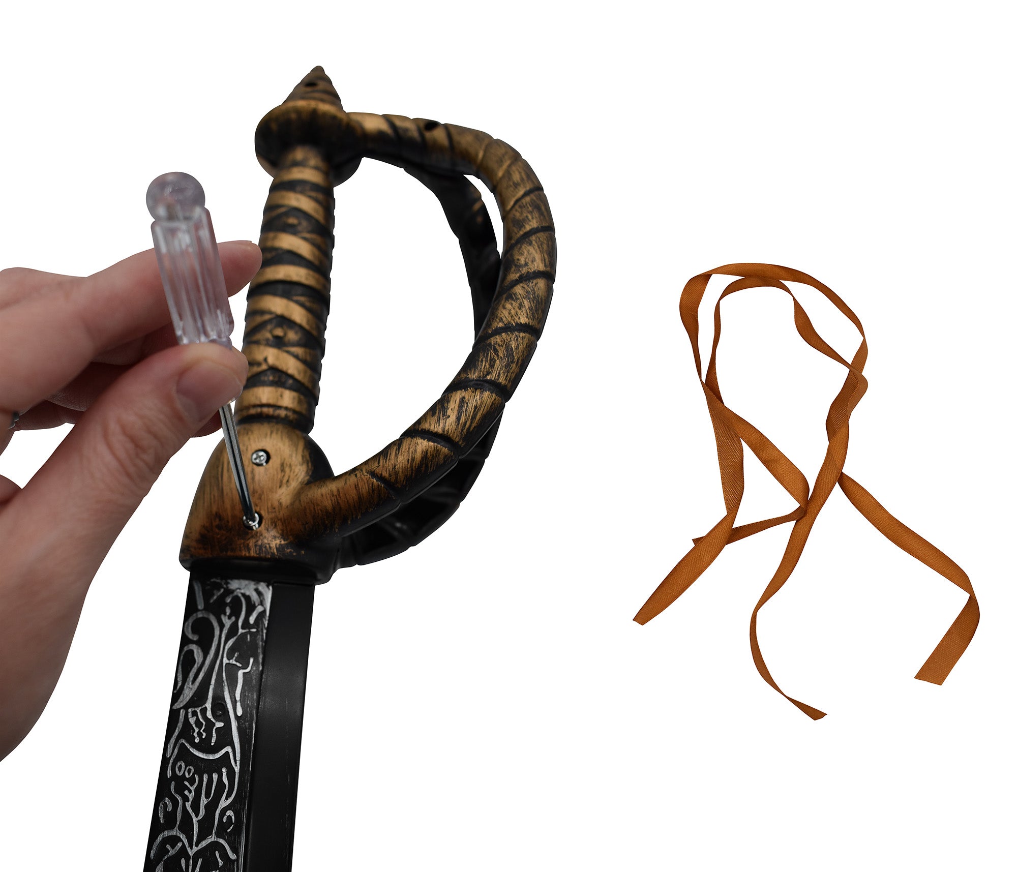- EASY LIGHT ASSEMBLY WITH INCLUDED TOOLS This pirate sword requires minor assembly for secure shipping. A small screwdriver is included to fasten the two screws, making setup quick and hassle-free. Once assembled, the sword stays sturdy, ensuring it holds up during all your costume adventures.