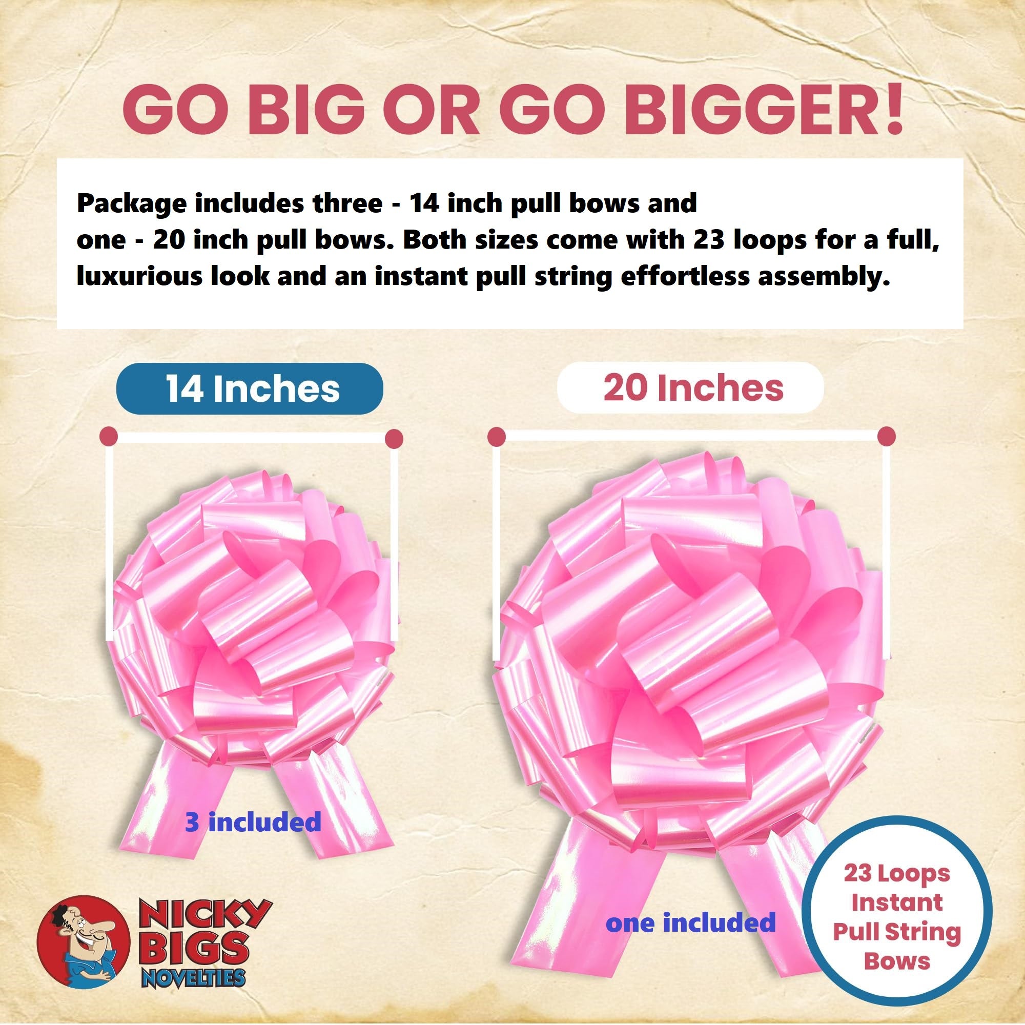 - Oversized Elegance: This 3 pack of 14-inch and single 20-inch pink iridescent metallic ribbon 4 pull bow set adds an eye-catching touch to any gift, perfect for large presents and special occasions.