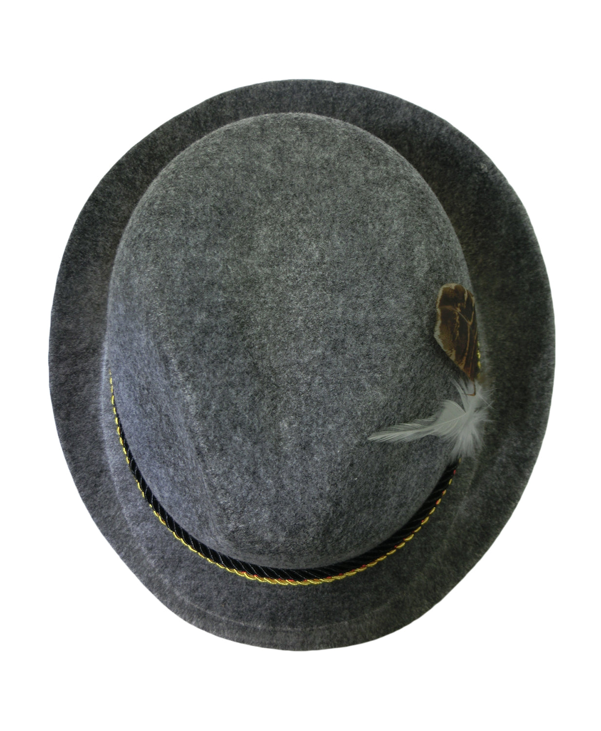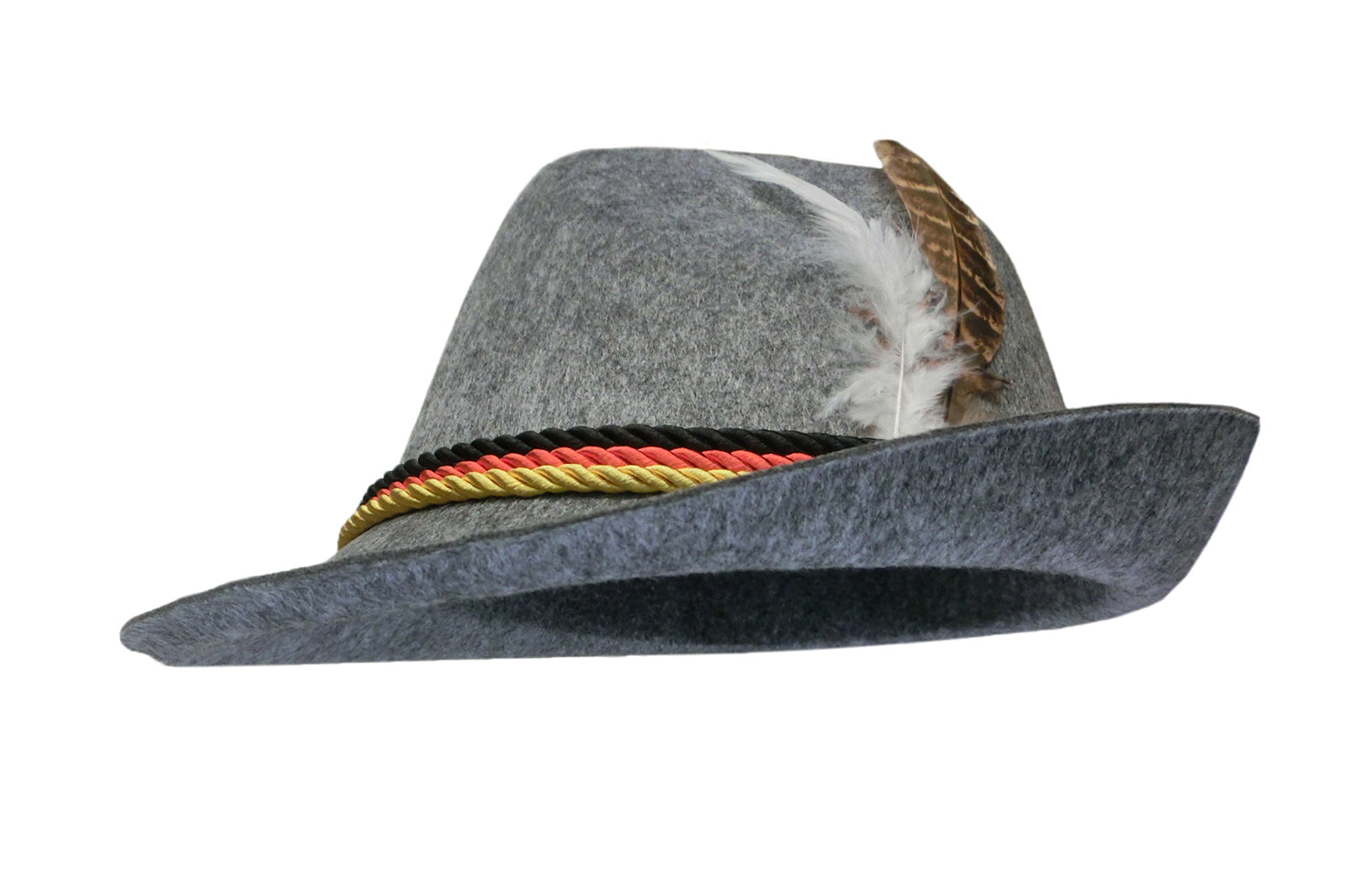- A wool-like felt German Alpine fedora, featuring a braided rope band and feather accent, designed to sit elegantly high on your head. Itâs adjustable to fit 21.6â23.5 inches (55â60âcm) in circumference and comfortably fits most adult sizes.