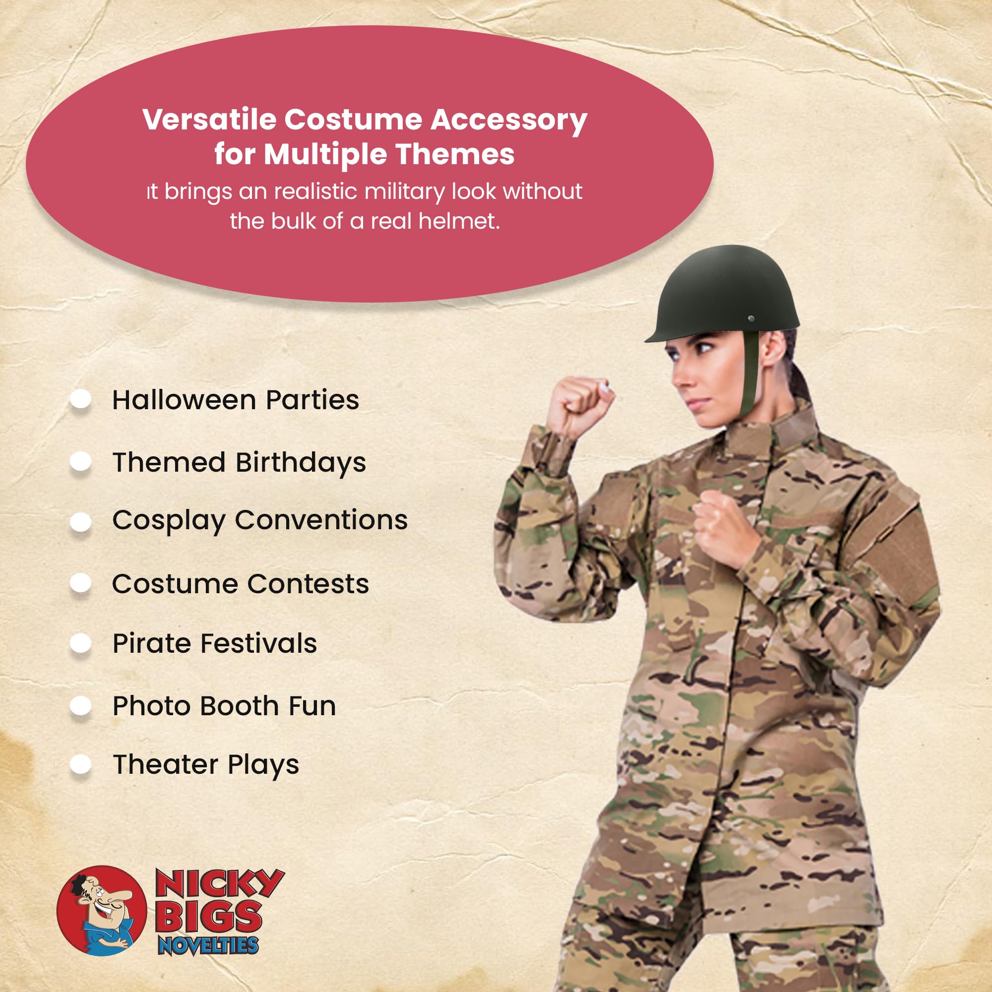 Nicky Bigs Novelties Adult Army Helmet Lightweight Thick Plastic WW1 WW2 Reenactment Costume Hat Olive Drab Green Adjustable
