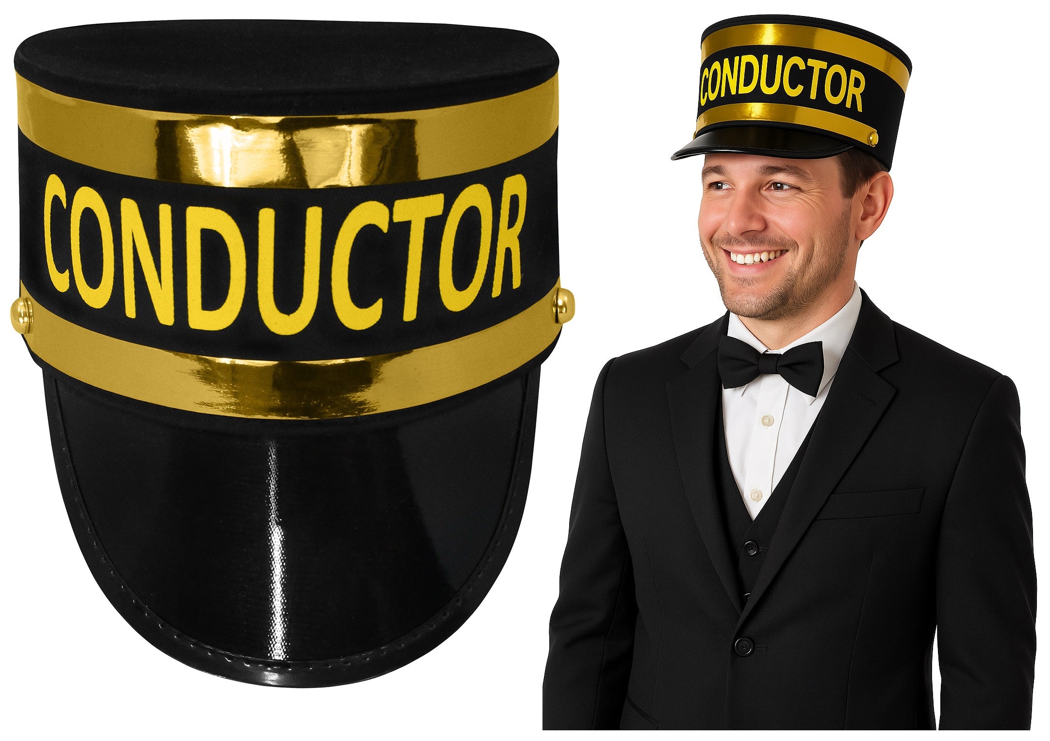 Nicky Bigs Novelties Train Engineer Conductor Hat And Whistle Set Adjustable Size Adult Costume Accessory (53-60 cm) Black & Gold Trim | Halloween, Christmas, Express Train Theme