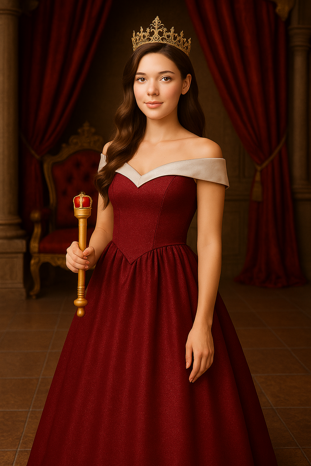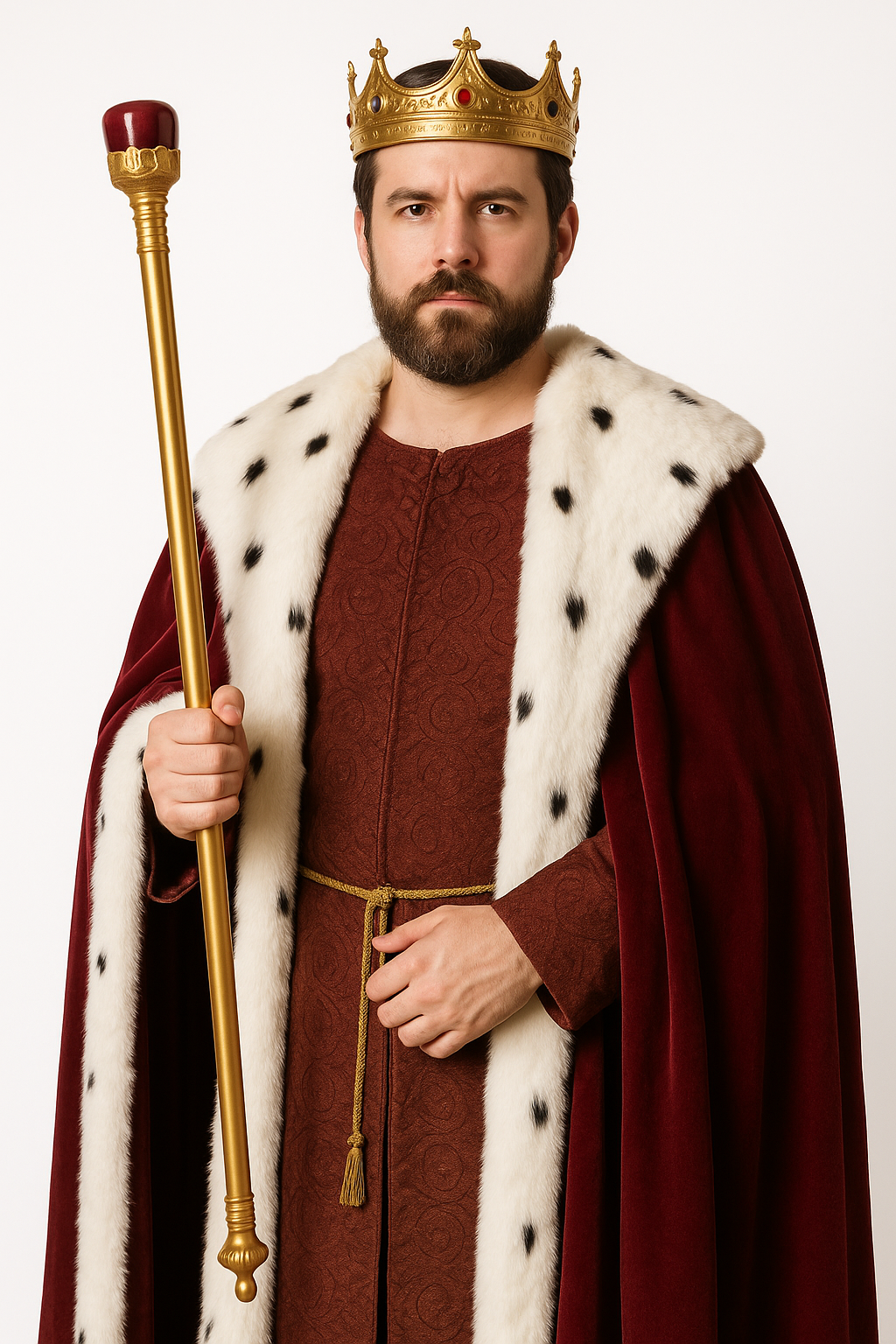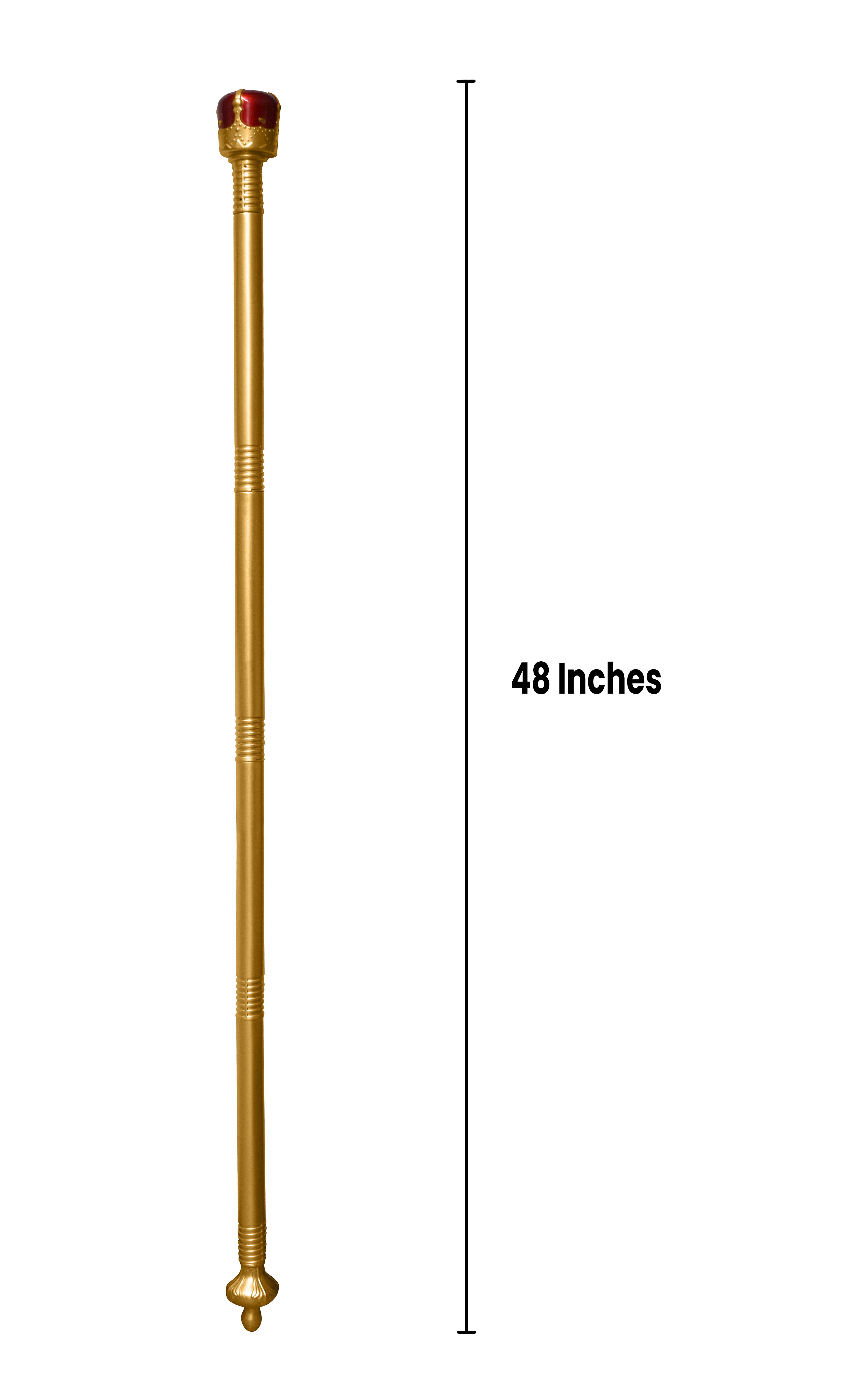 • Elegant Design with Red Crown Topper: Featuring a gold-painted finish and a striking red crown topper, this scepter adds a touch of royalty to any ensemble, making it perfect for kings, queens, and other noble characters.