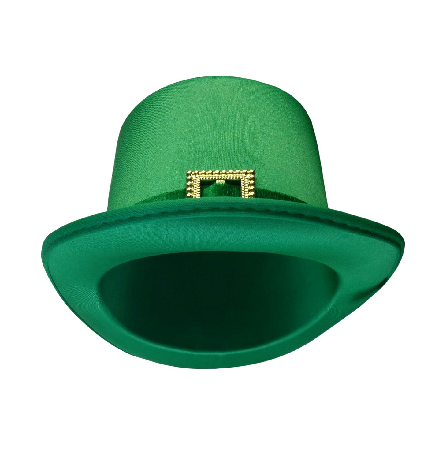 - Attention Grabbing Top Hat With Gold Buckle In Bold Irish Green Color