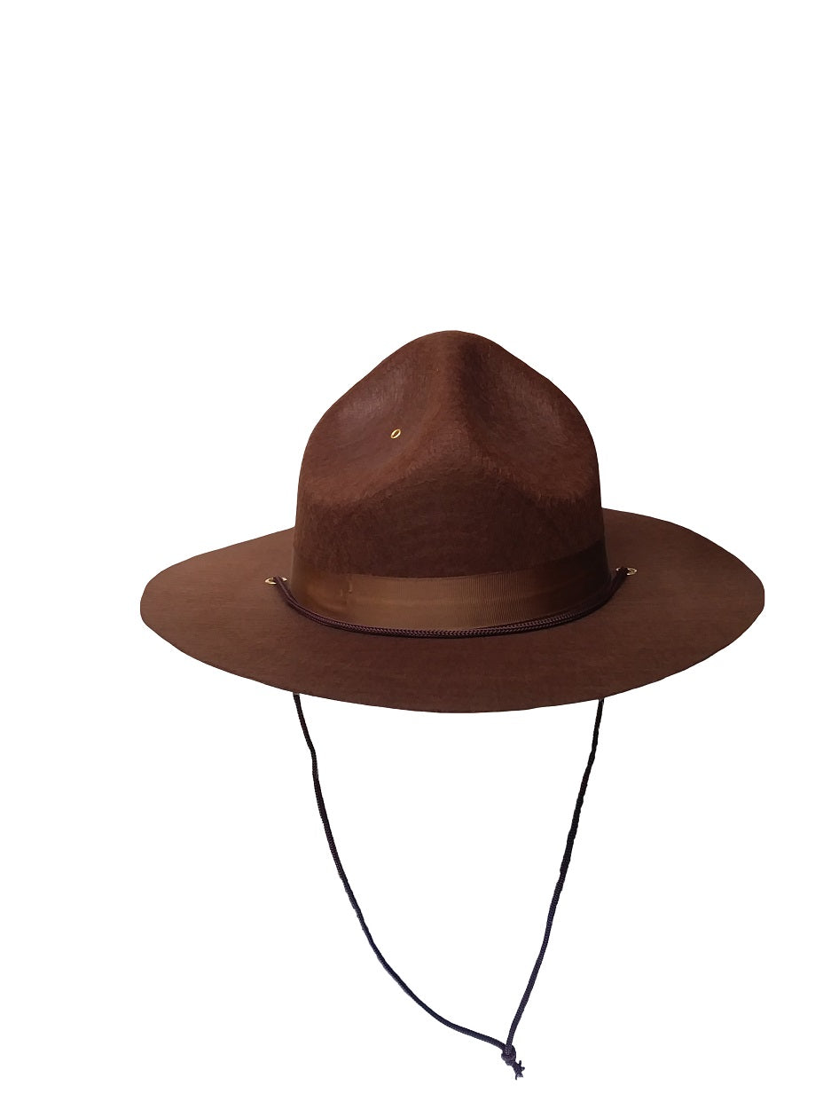 - mountie hat, brown, one size fits most. sized about 59 cm or 22.2 inches in circumference