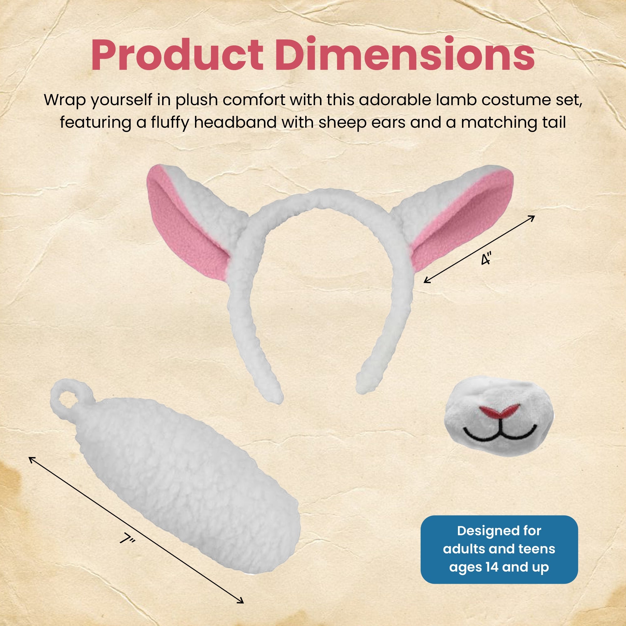 - SOFT & COMFORTABLE SHEEP COSTUME ACCESSORIES This plush lamb costume set includes a soft headband with fluffy sheep ears and a matching white tail, creating a fun and realistic farm animal look. The comfortable design ensures easy wear, making it ideal for Halloween, cosplay, school plays, and themed parties.