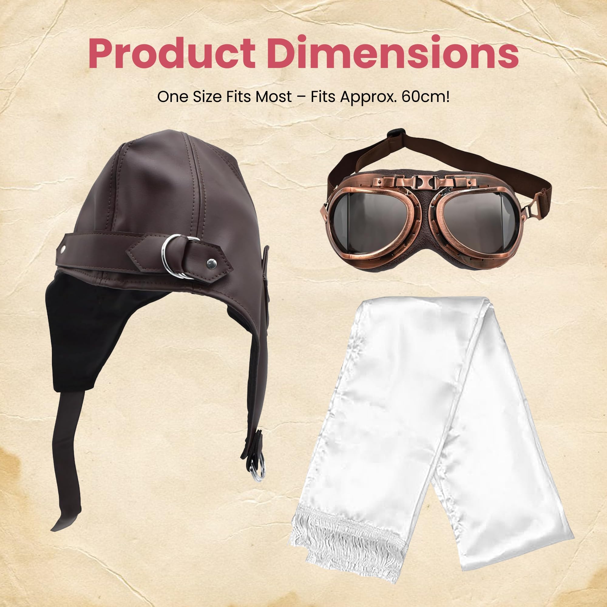 Deluxe Vinyl Retro Pilot Aviator Helmet Kit Flying Hat Goggles And Scarf Costume Set, One Size