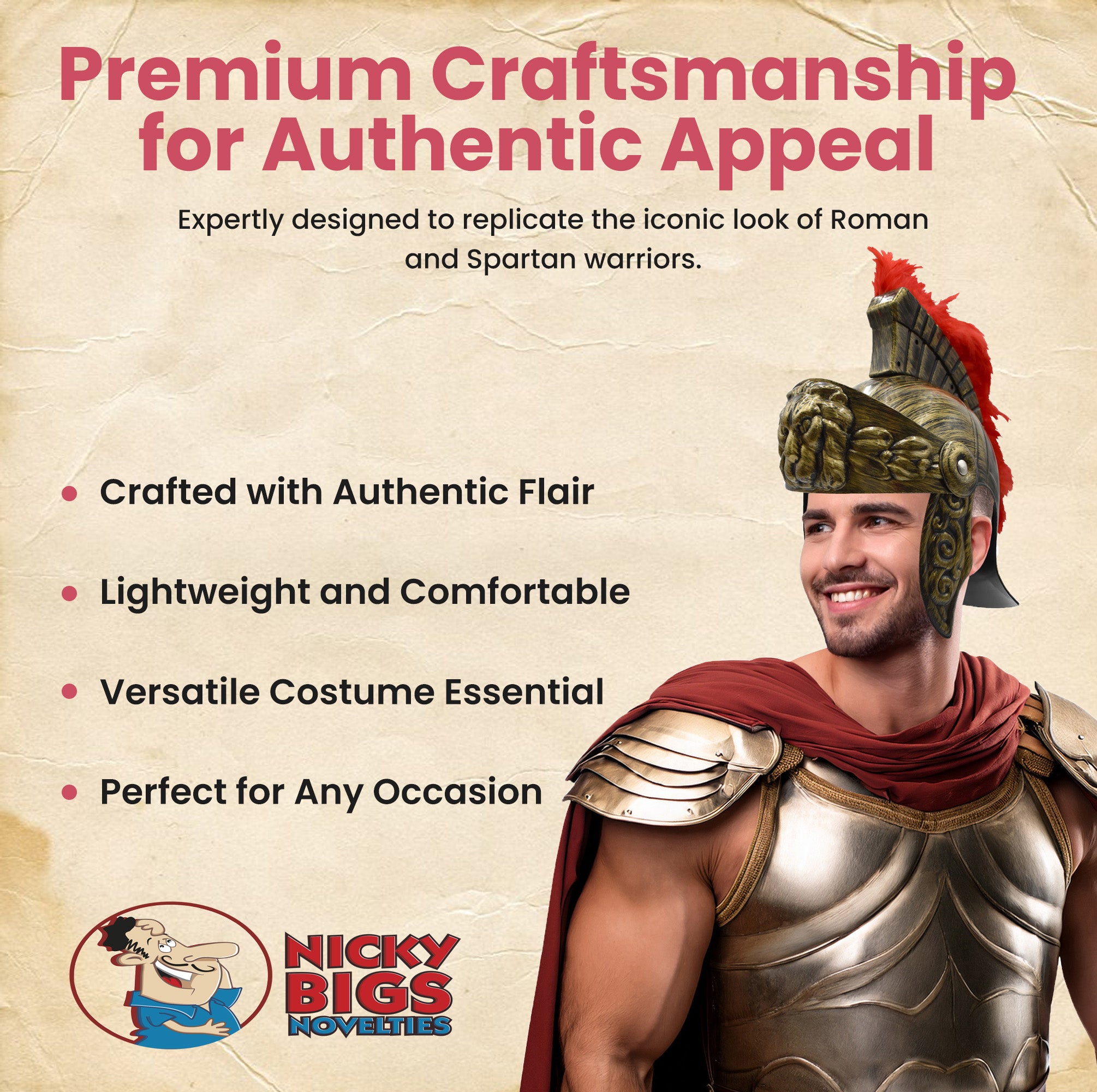 Nicky Bigs Novelties Adult Roman Helmet With Red Fake Feather Plume Greek Gladiator Costume Helmets Trojan Legion Helmet