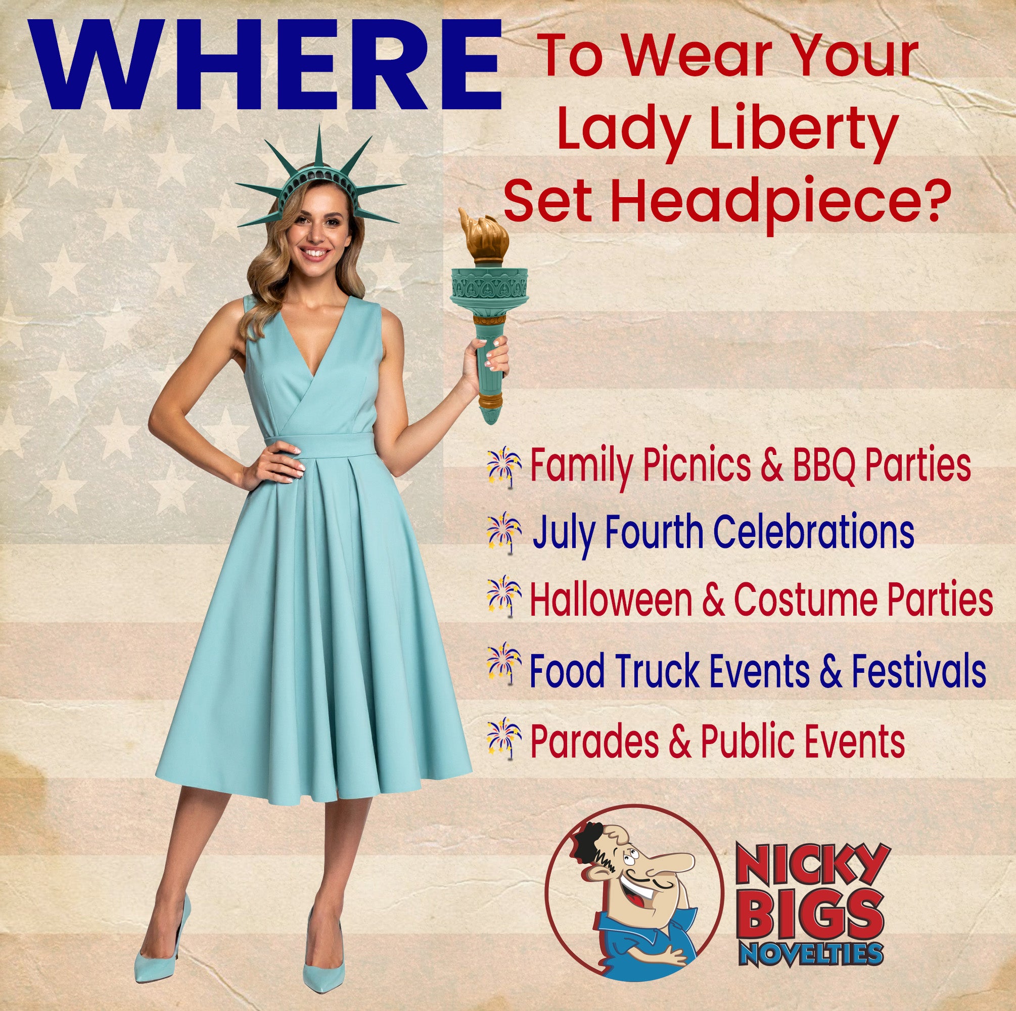 - IDEAL FOR PATRIOTIC OCCASIONS Whether you're dressing up for Independence Day, Halloween, or a historical school project, this Statue of Liberty costume set is the great accessory to showcase your love for freedom and democracy.