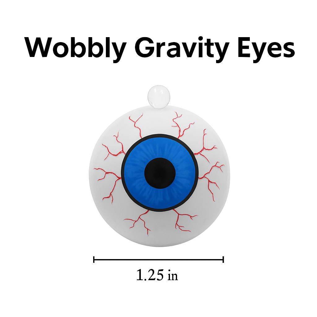 Take your Halloween setup to horrifying new heights with the Nicky Bigs Novelties Wobbly Gravity Eyeballs. Designed to thrill and chill, these plastic eyeballs feature a unique gravity-based liquid core that keeps them eerily staring upward no matter how they move. Float them in a bubbling punch bowl, let them roll across a tabletop in spooky games, or nestle them into costumes and props for an unforgettable fright night. Whether you're entertaining trick-or-treaters or decorating for a haunted house party, these blue iris eyes deliver creepy realism and playful fun in one unforgettable package. Durable, reusable, and wonderfully weird—these are the Halloween prop you didn’t know you needed.