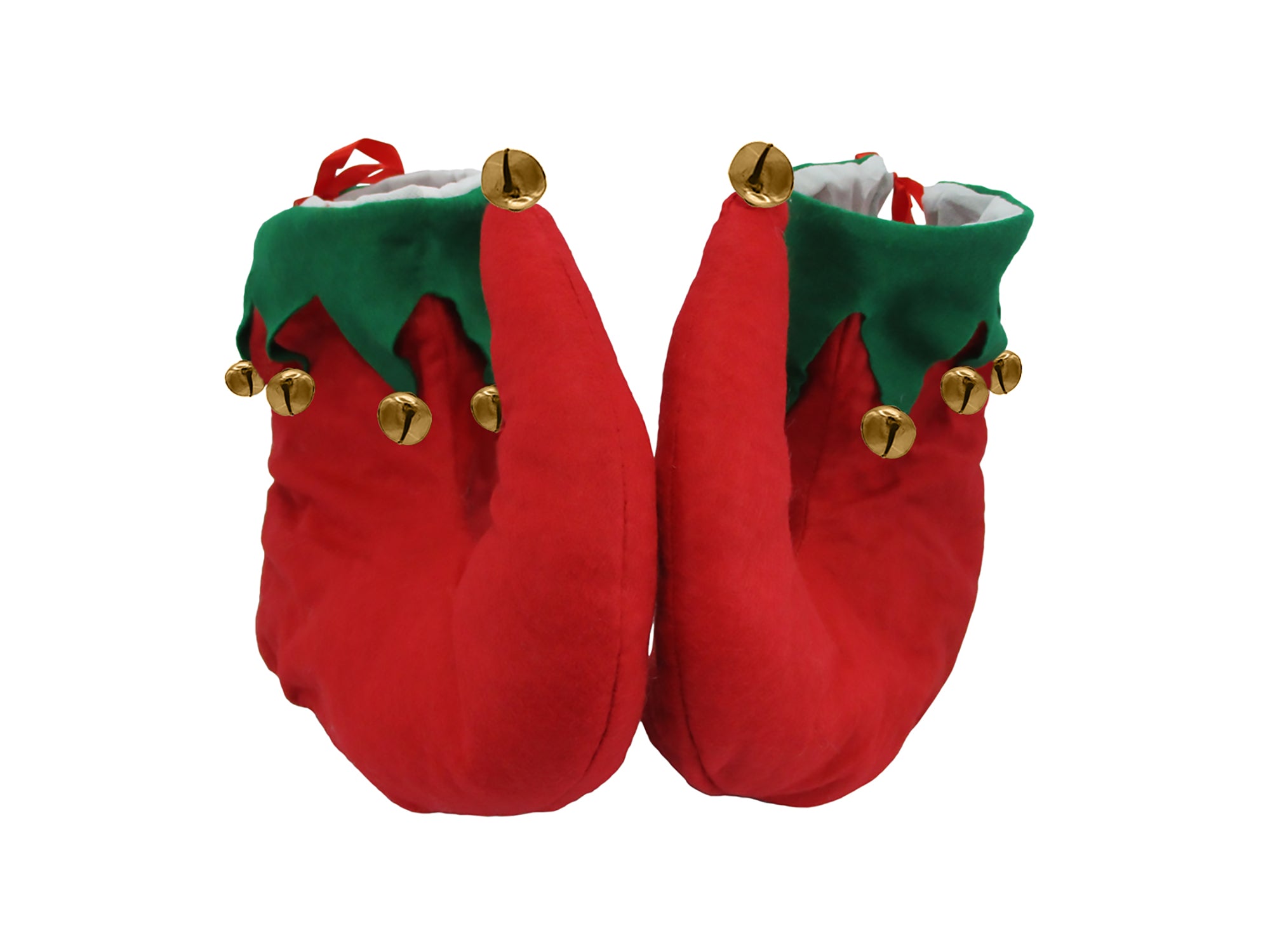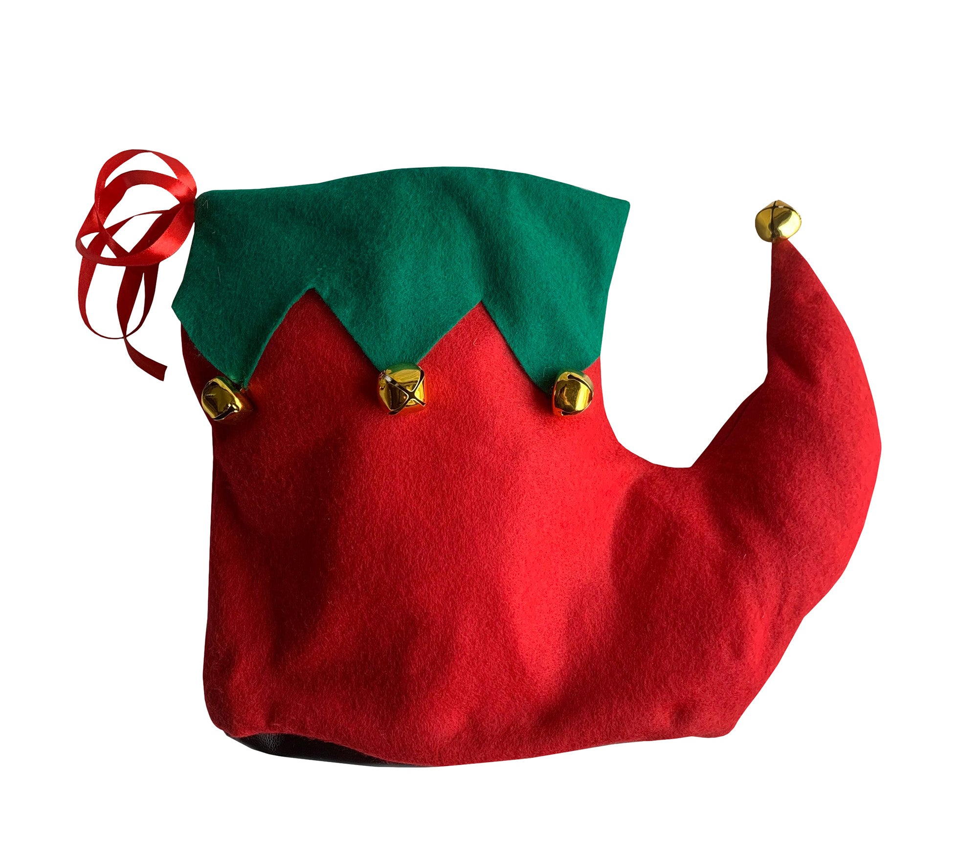 - Complete Holiday Costume Accessory Set – Includes a red and green felt elf hat and a matching pair of curled elf shoes, both adorned with jumbo gold jingle bells for that classic Christmas look. A joyful way to bring festive cheer to holiday parties, bar crawls, Christmas parades, or casual seasonal wear.