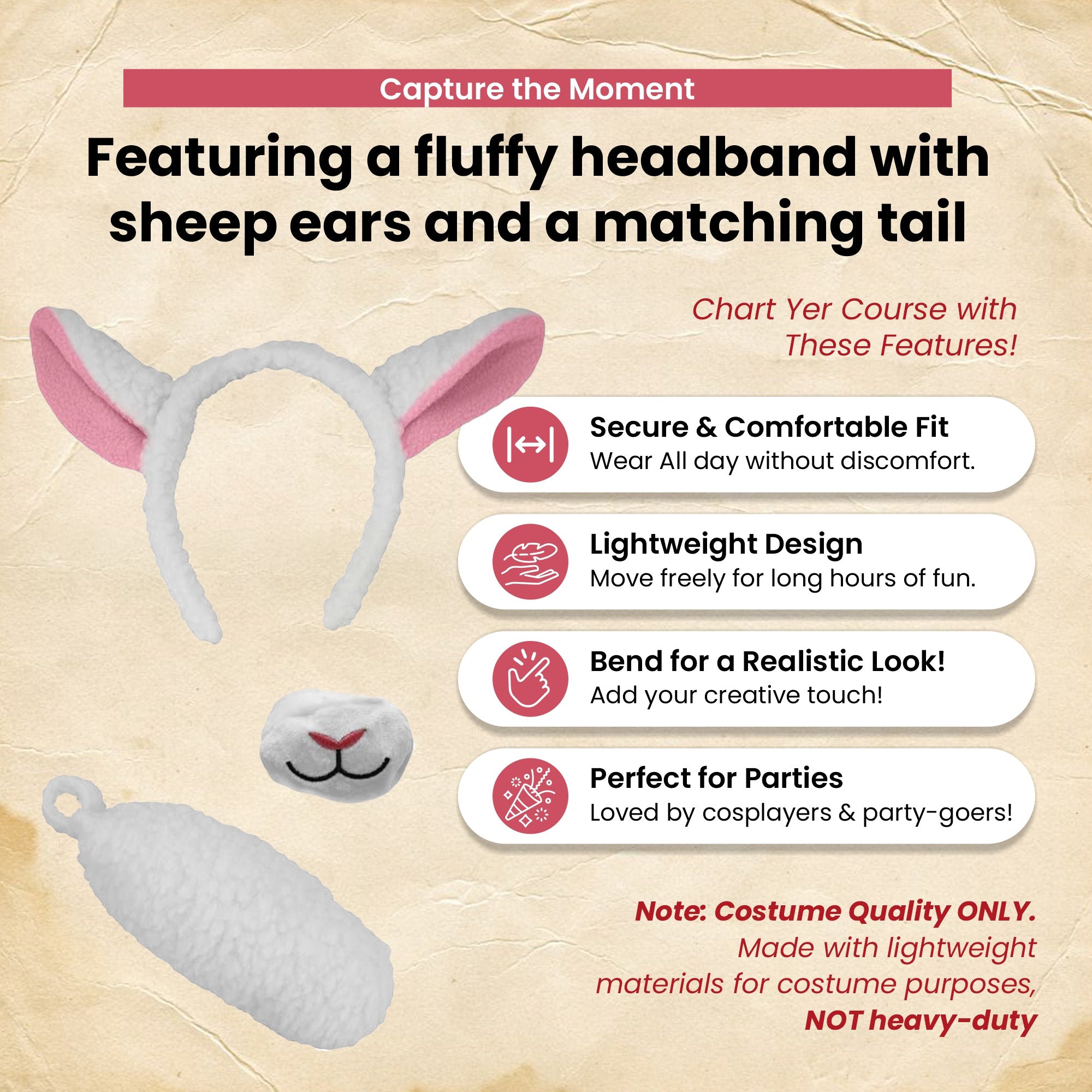 - SOFT & COMFORTABLE SHEEP COSTUME ACCESSORIES This plush lamb costume set includes a soft headband with fluffy sheep ears and a matching white tail, creating a fun and realistic farm animal look. The comfortable design ensures easy wear, making it ideal for Halloween, cosplay, school plays, and themed parties.