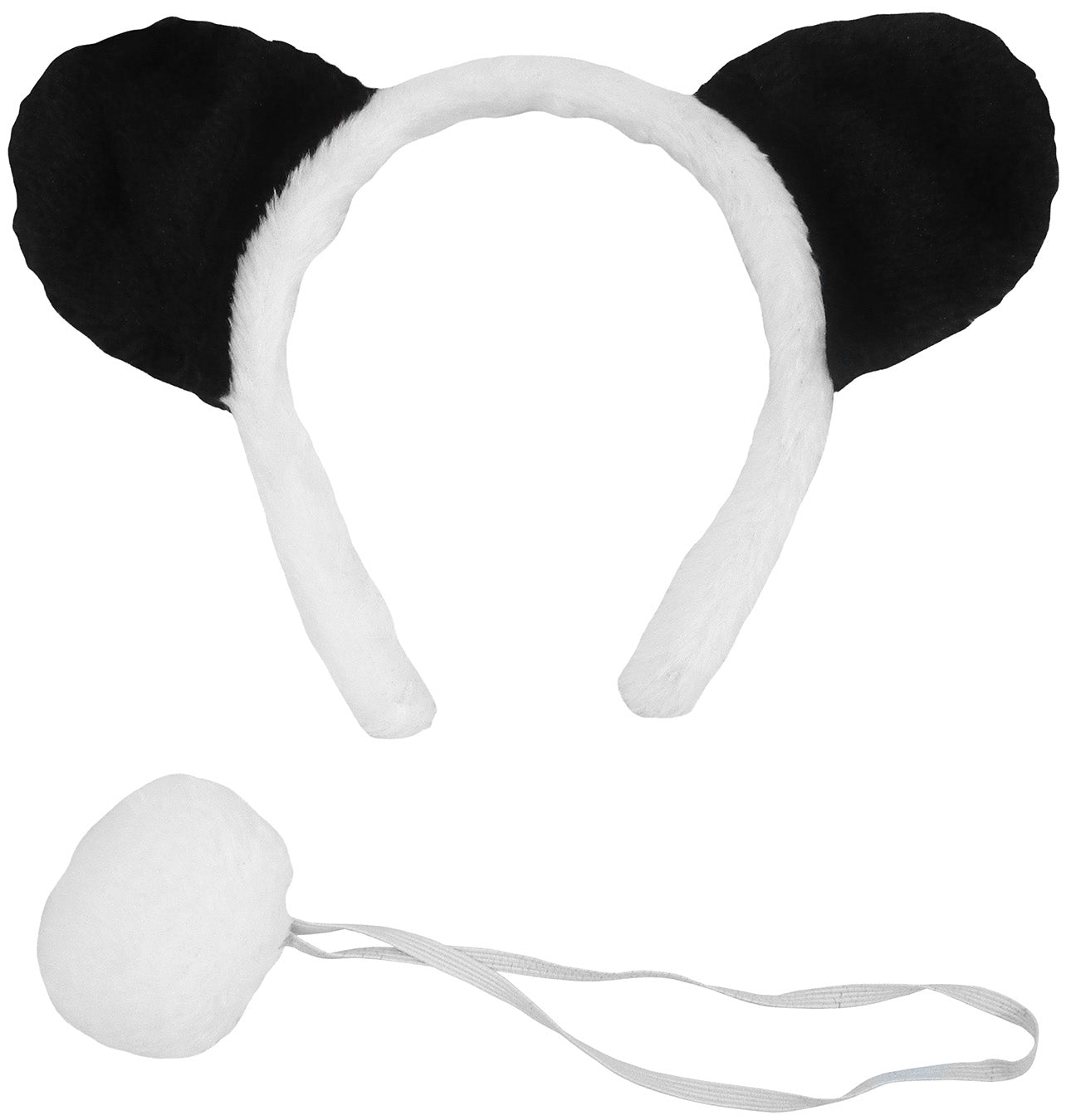 Unisex Panda Bear Ears Headband and Tail Costume Set, Black/White, One Size