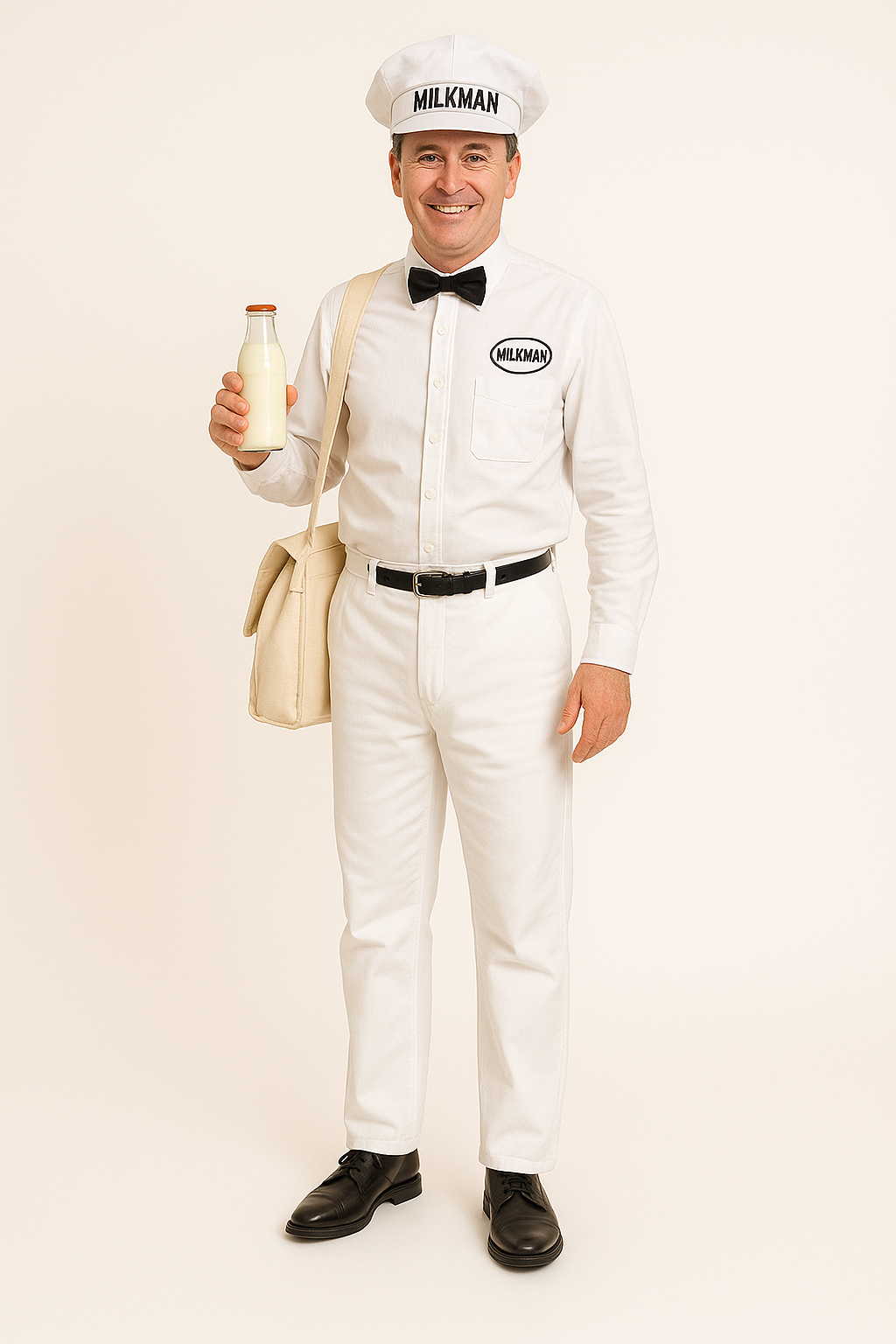 White Milkman Milk Man Hat and Black Bowtie Set Adjustable Halloween Accessory