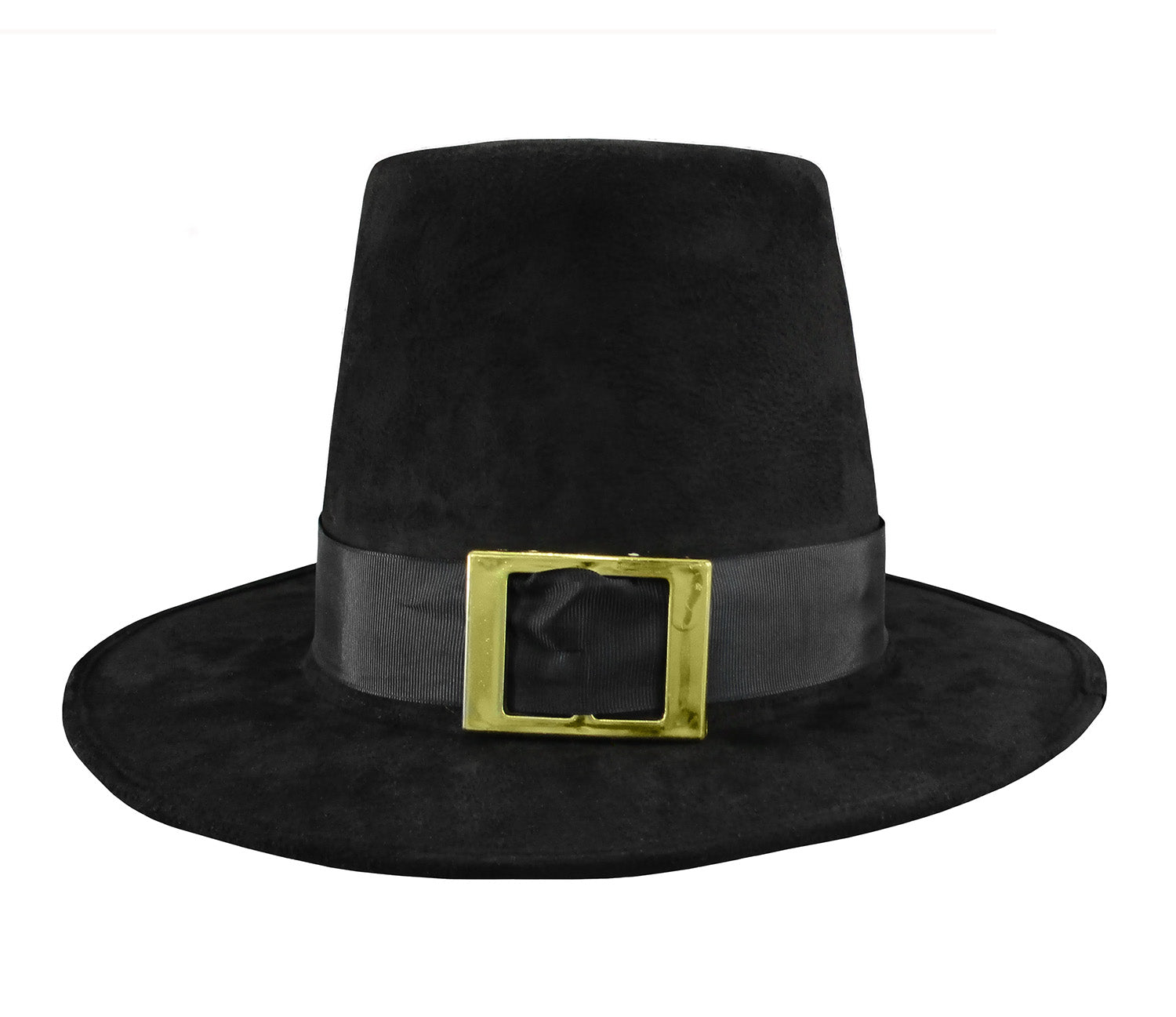 3 PK Deluxe style pilgrim hat. Great for Thanksgiving plays! Great for both adults and some teens. One Size fits most. Sizes range from 58 cm to 59cm. Made of faux suede with a wide band and a gold buckle on the front. Brim is 2.5" wide and the hat stands approximately 6.5" tall. You'll never go wrong with Nicky Bigs Novelties. For Ages 14 and Older