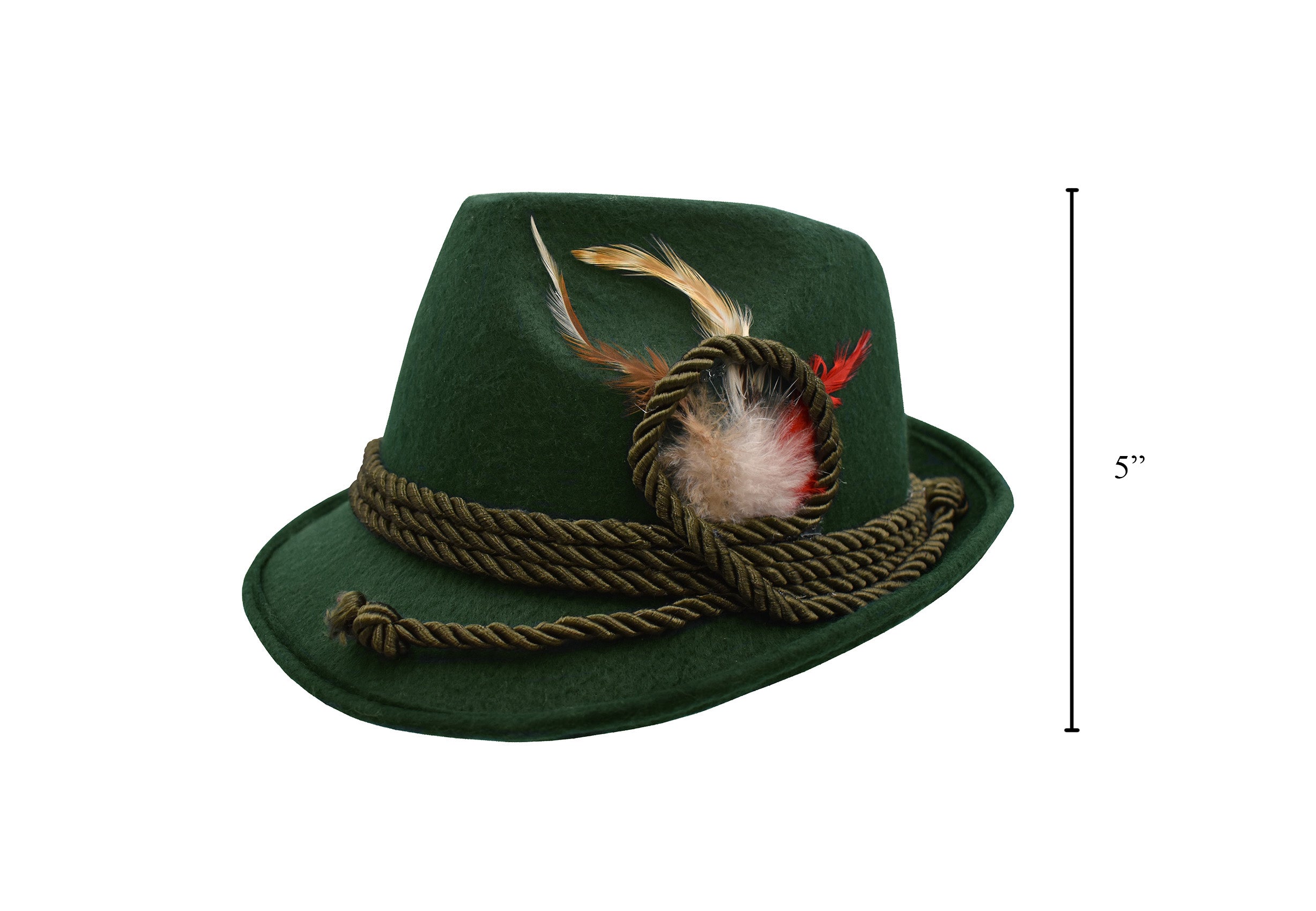 - Choose from Three Festive Colors: Available in Brown, Green, or Gray to match your Oktoberfest outfit. Each hat features a braided rope trim and colorful feather detail on the side.