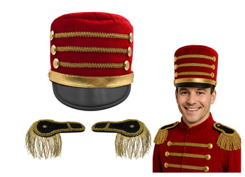 - Complete Costume Kit – Includes 1 Majorette-Style Hat & 2 Shoulder Epaulets with gold trim, tassels & faux button accents – the ultimate Toy Soldier or Band Leader accessory.