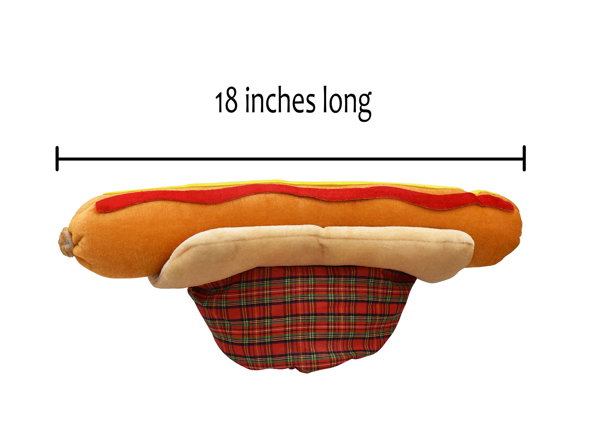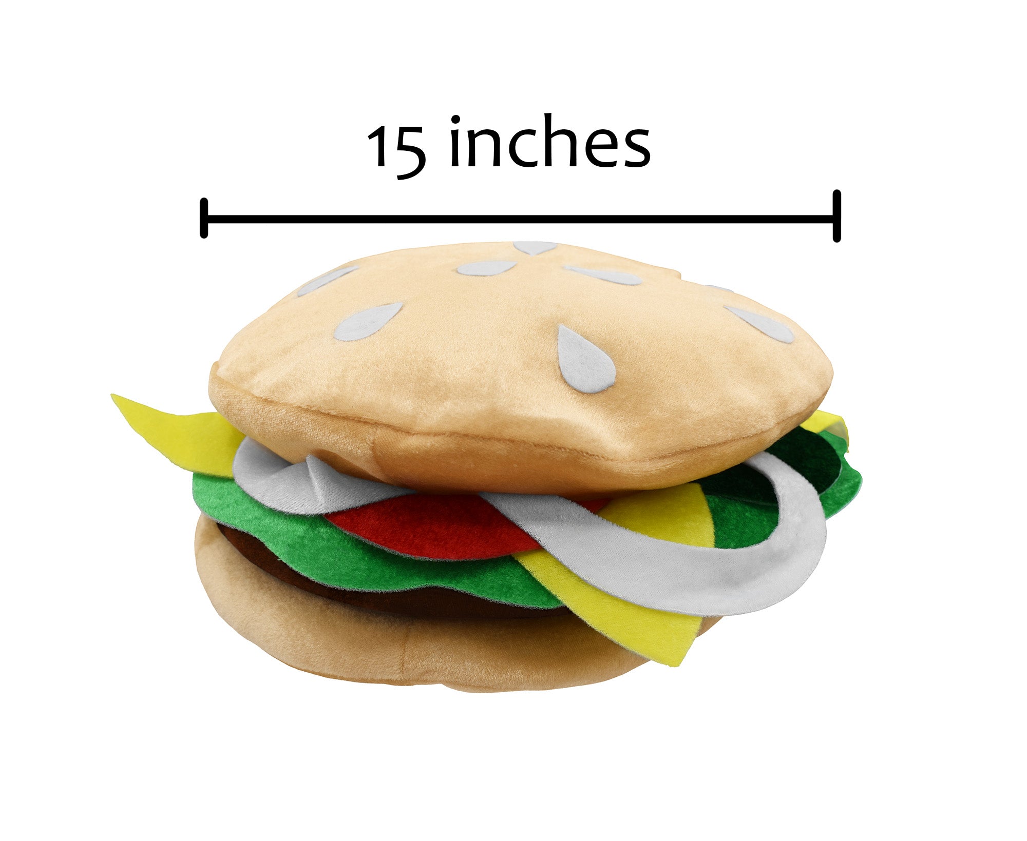 - Cheeseburger is approximately 15 inches across and stands about 6 inches tall! Hotdog is about 18 inches long and stands 4 inches tall.