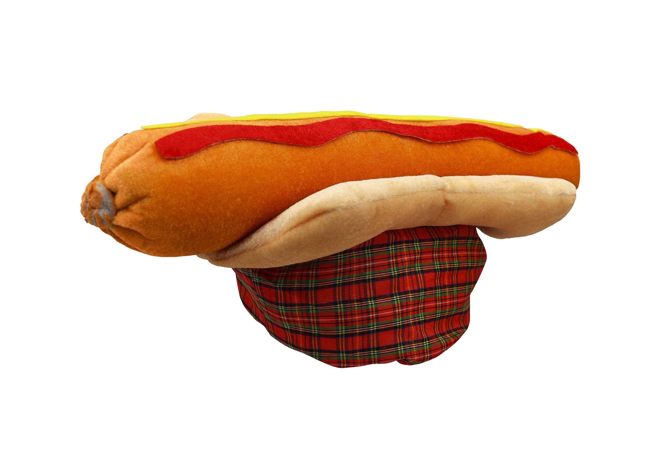 - Burger hat fits about 61 cm or a hat size of 7 5/8th. Hotdog hat is sized about 58 cm or 22.8 inches.