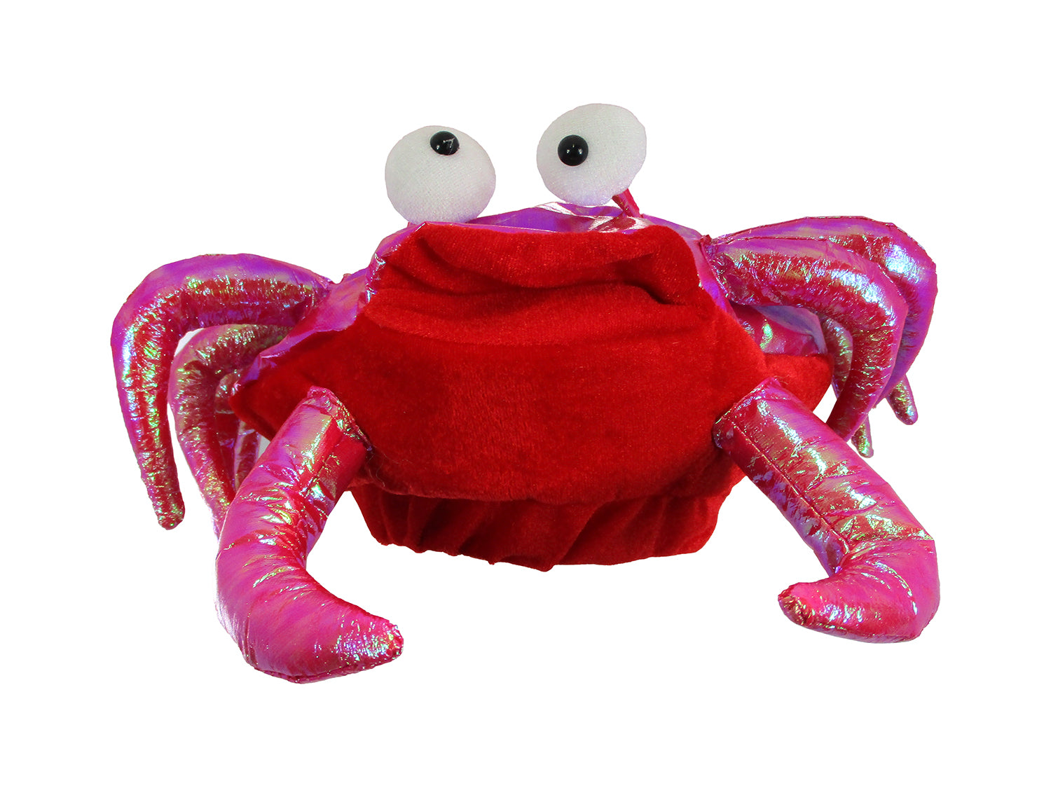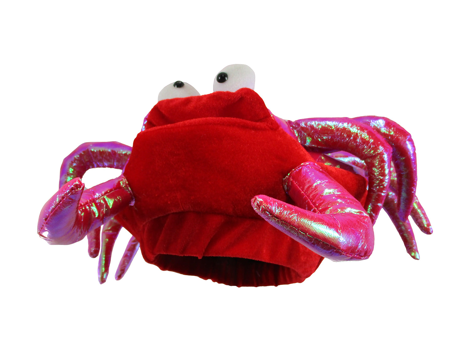 - Adult Size Red Crab Hat. Featuring iridescent top with white posable eyes.