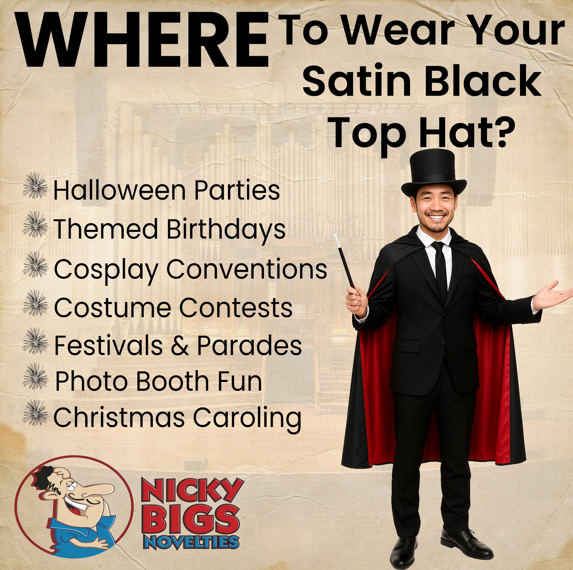 Versatile and fun, itâs perfect for formal occasions (coaches, grooms, prom), themed celebrations (Victorian, Roaring â20s, Disneyâs Mad Hatter), holiday festivities (Christmas caroling, St. Patrickâs, Day of the Dead), cosplay characters (magician, ringmaster), or theatrical performances. Spot clean only and keep away from fire for longevity.