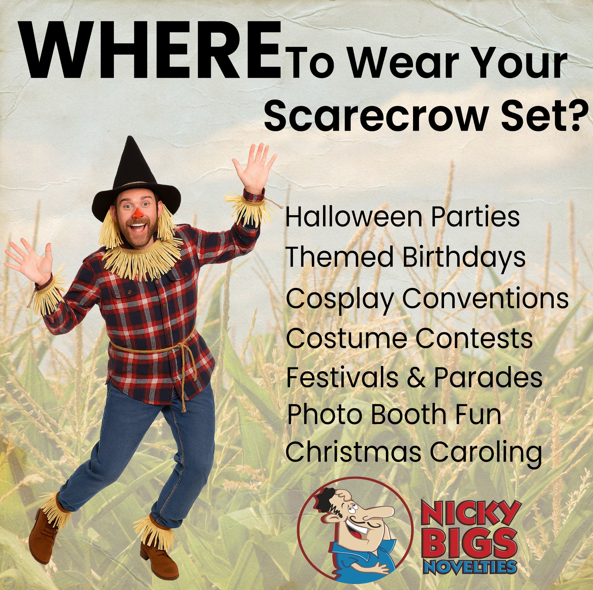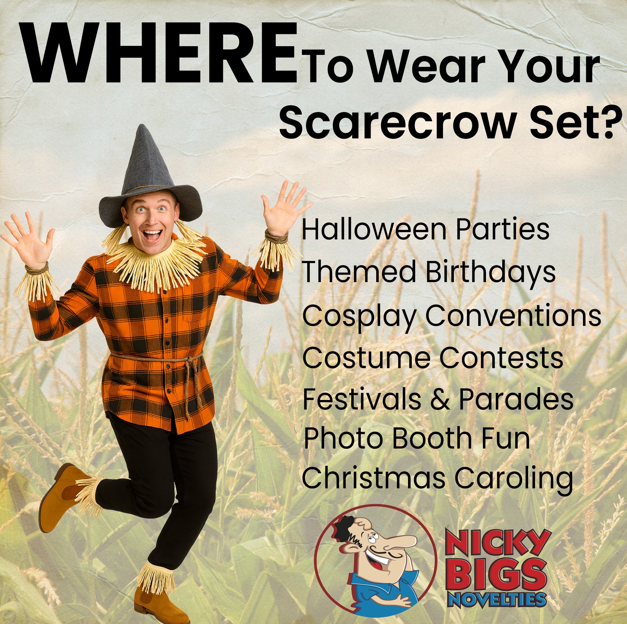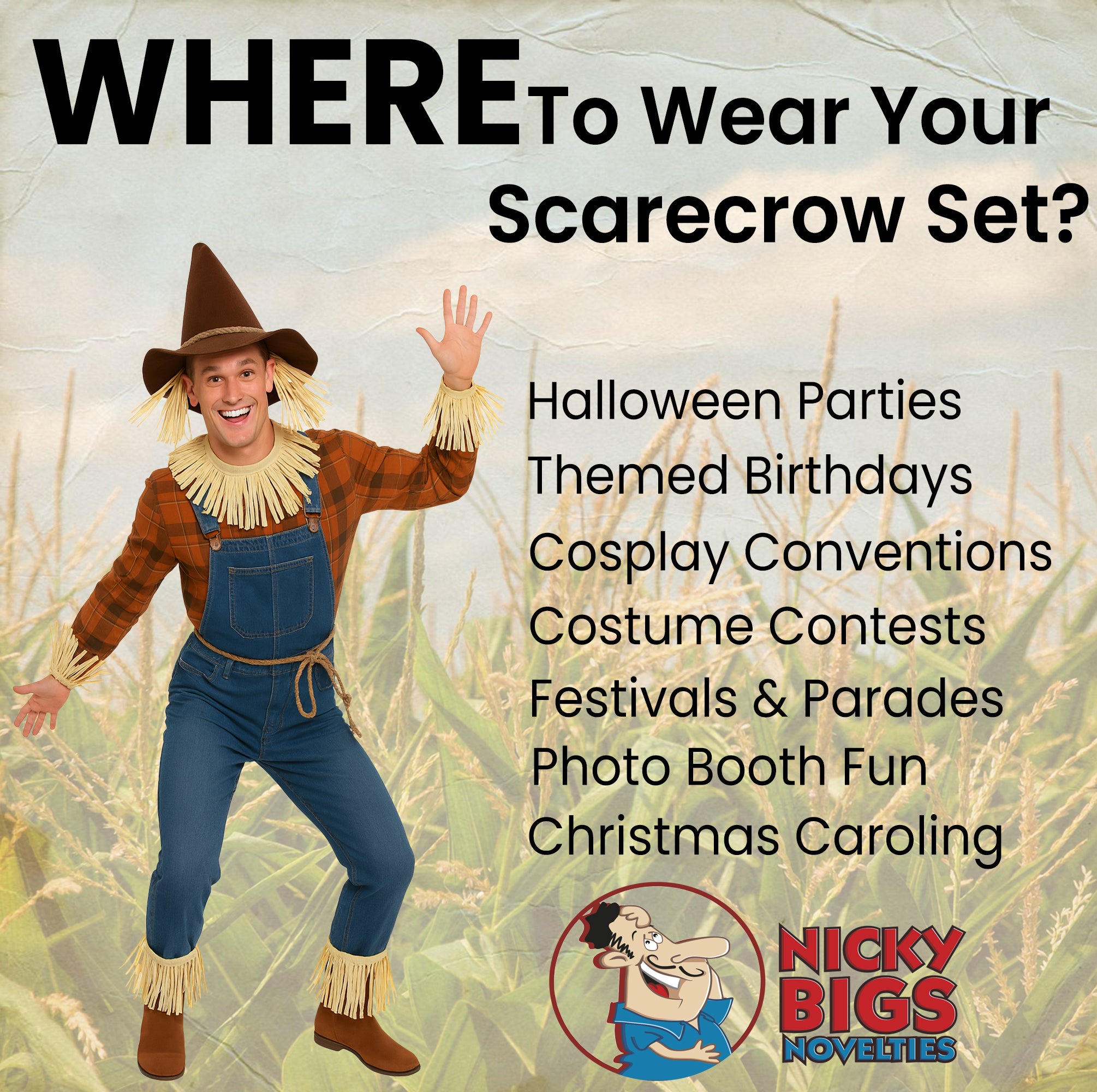 - VERSATILE & FUN More than just a costume, this scarecrow set works as a decoration, cosplay outfit, or themed party attire. Whether scaring up some laughs at a Halloween bash, harvesting good times at a festival, or simply embracing fall vibes, this kit is a seasonal favorite!