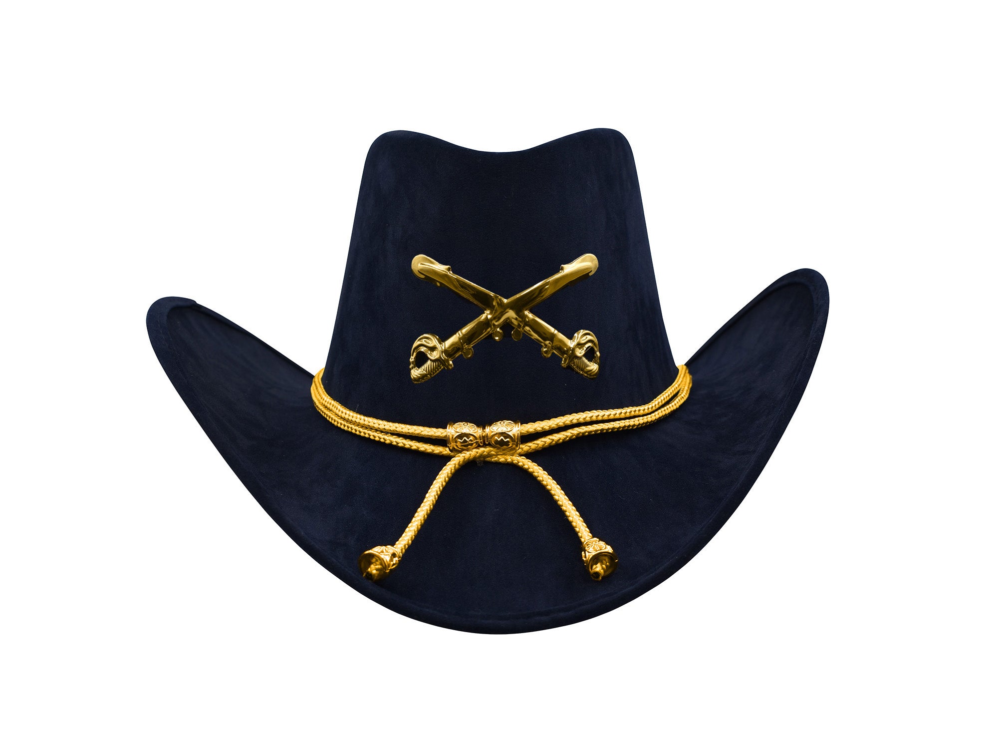 - Civil War Cavalry Hat This 7-inch-tall military-style hat is a must-have for Union and Confederate soldier costumes, reenactment gear, and western attire. Designed with a structured shape, gold cord accents, and an insignia emblem, it adds a realistic touch to historical and theatrical ensembles.