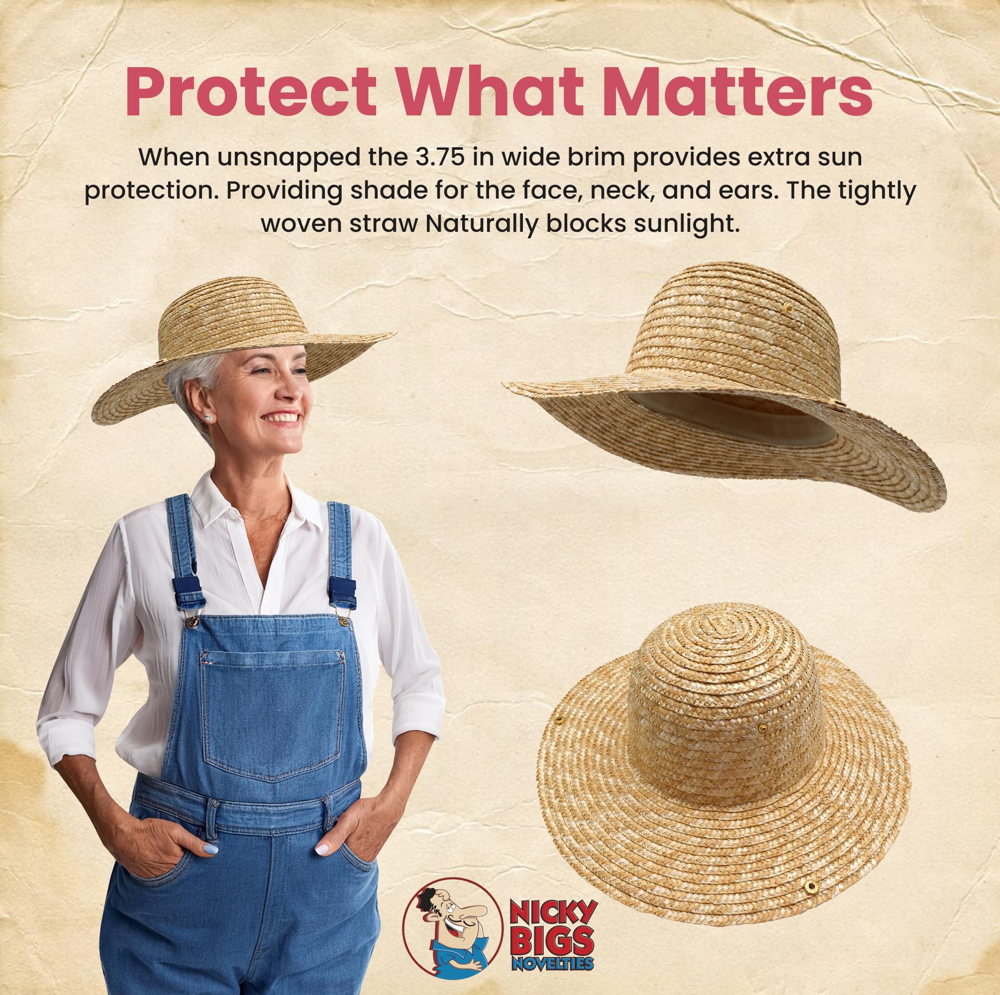 Designed with a pull-string adjustable sweatband, this hat fits most adults and teens (ages 14+), ensuring a secure and comfortable fit. The snap-button sides let you customize your look—keep them up for a classic pirate, colonial, or Southern belle style, or unsnap them for full-brim sun protection while working outdoors.