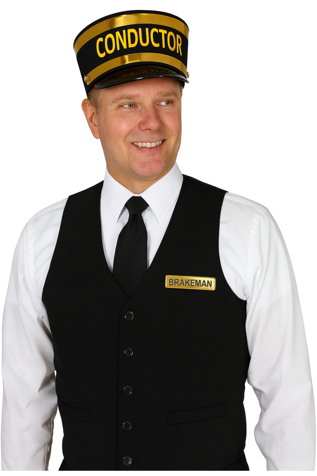 • Includes stretchable Conductor style hat with Silver whistle on attached lanyard