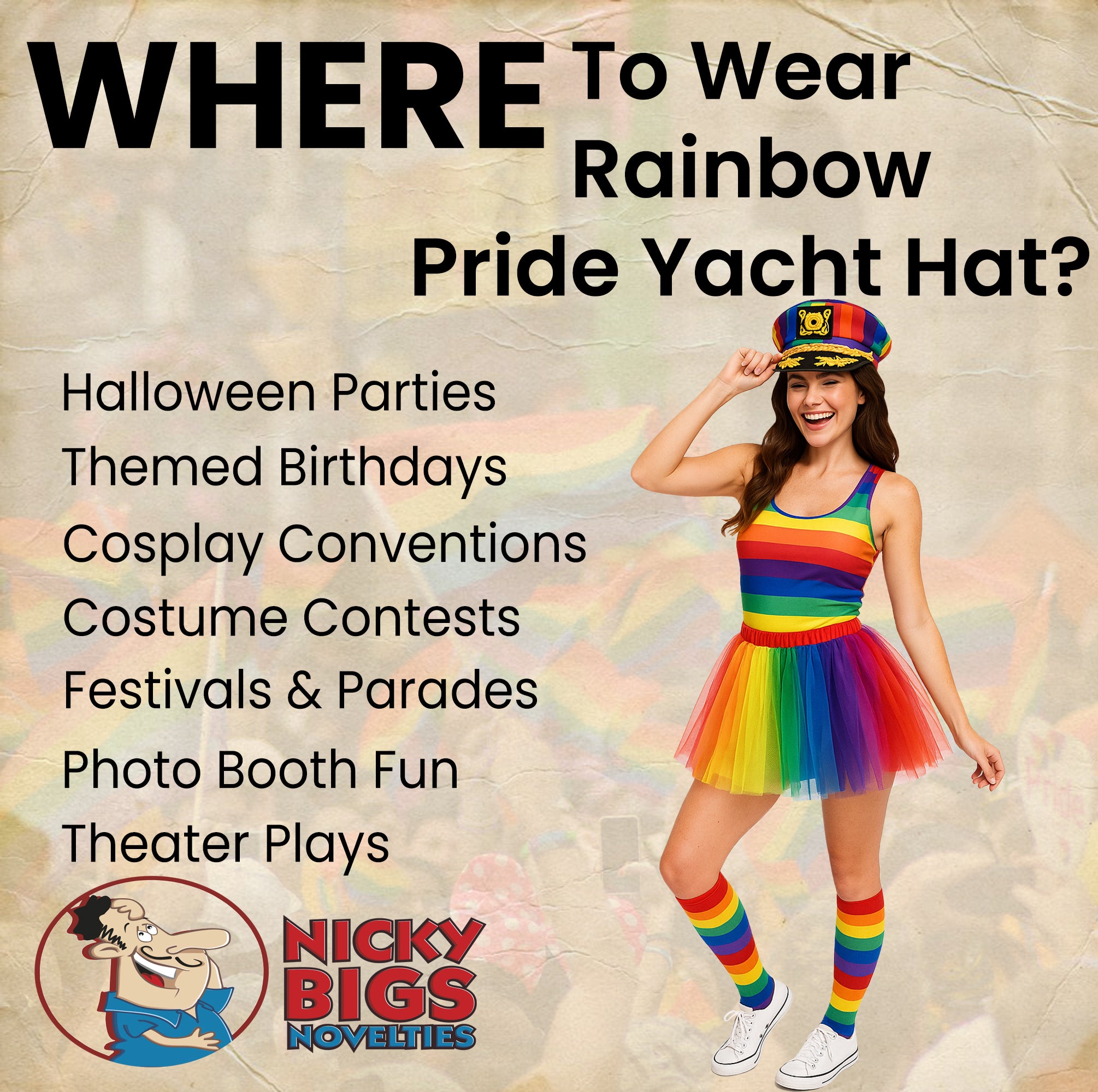 Nicky Bigs Novelties Adult Rainbow Yacht Captain Hat Adjustable Gay Pride Festival Sailor Hat for Men, Women & Teens Fun Parade, Mardi Gras, Boat Party Costume Accessory Nautical Snapback Cap