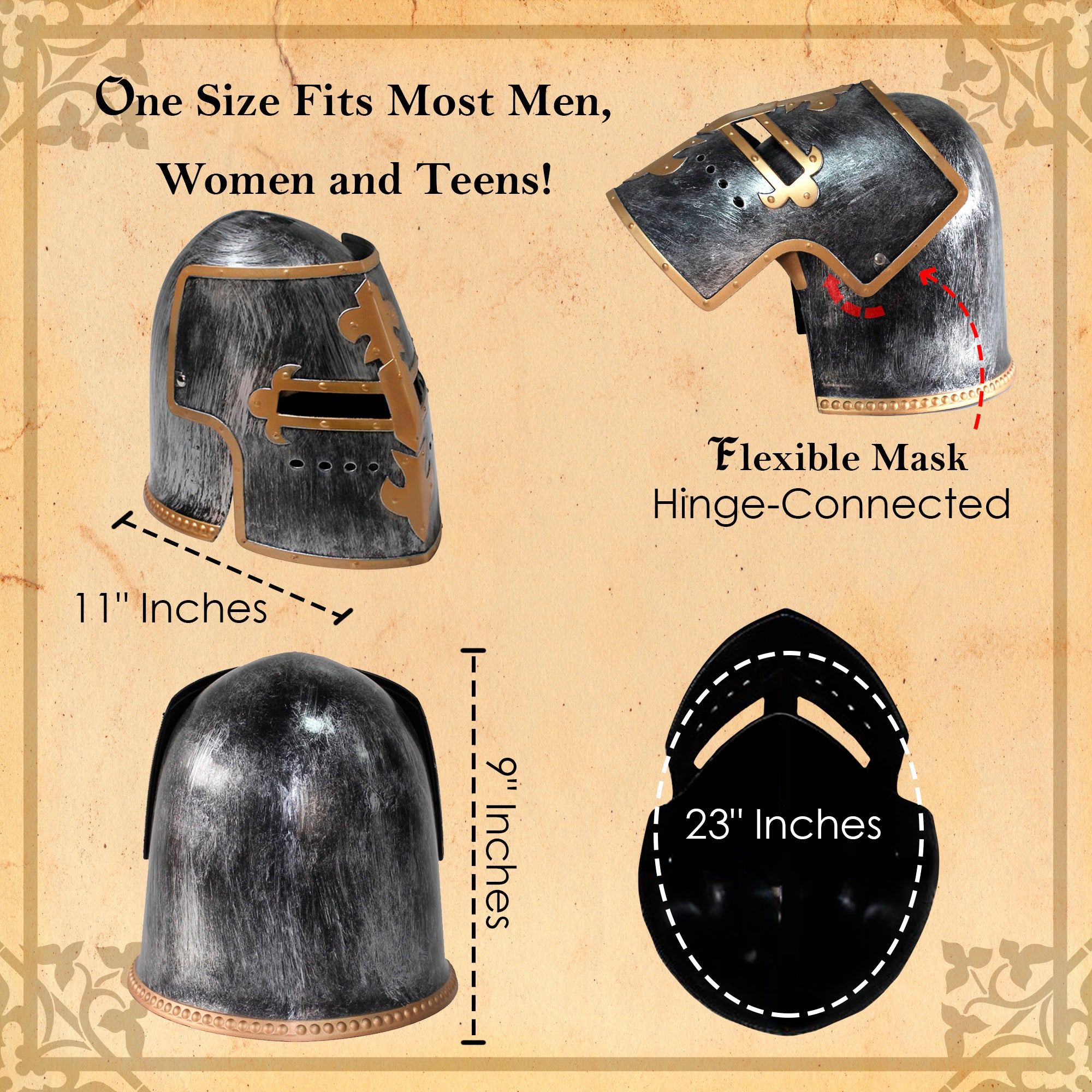 - EVENT-READY STYLE: Whether for Halloween, cosplay conventions, Renaissance fairs, or theatrical performances, this knight helmet is a bold and striking choice to complete your warrior or knight costume ensemble.