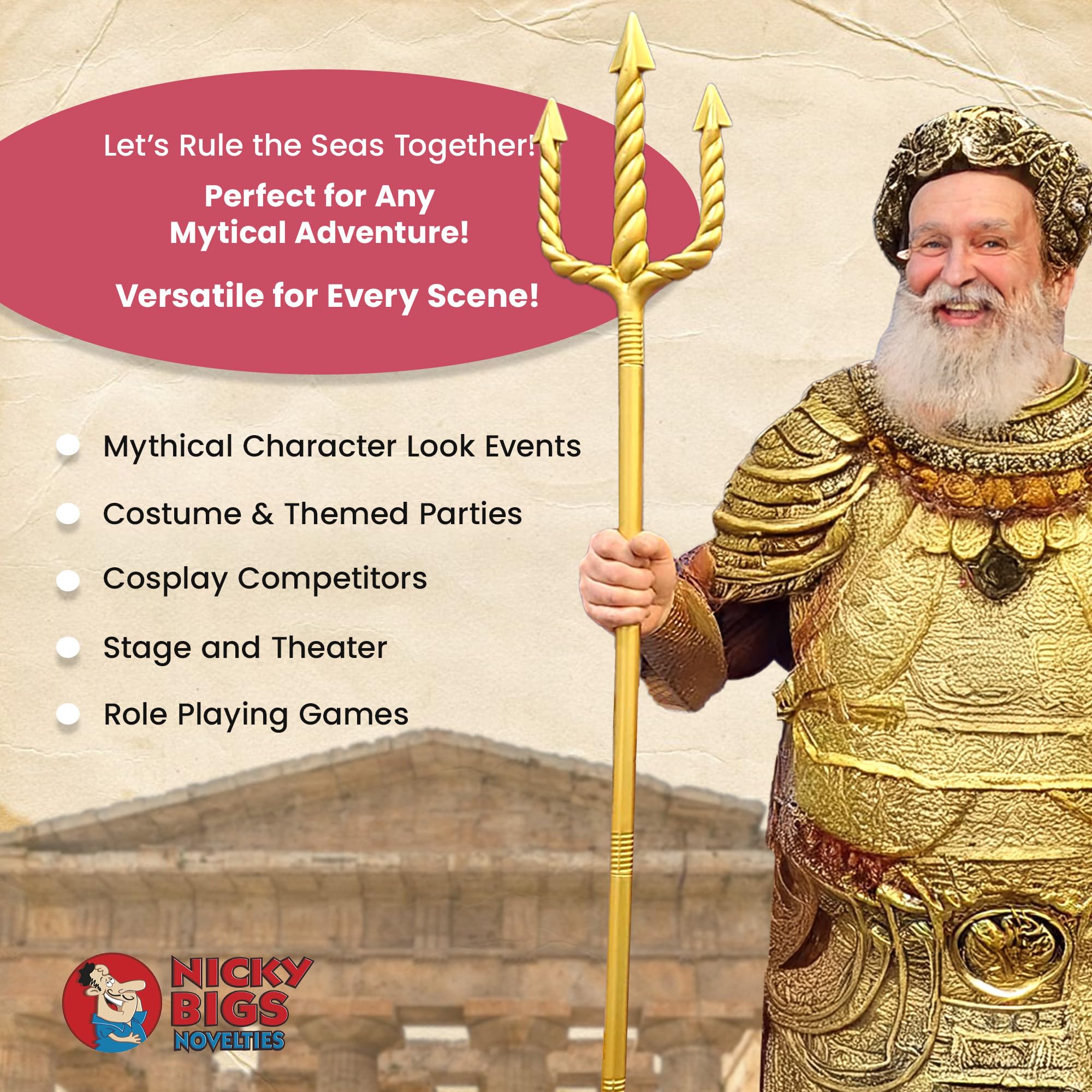 - DRAWN FROM MYTHICAL LEGENDS: With a gold or red pitchfork finish and intricate design, this King Triton costume trident commands authority. Perfect for Neptune or Poseidon cosplay, adding authenticity to Halloween events or theatrical performances.