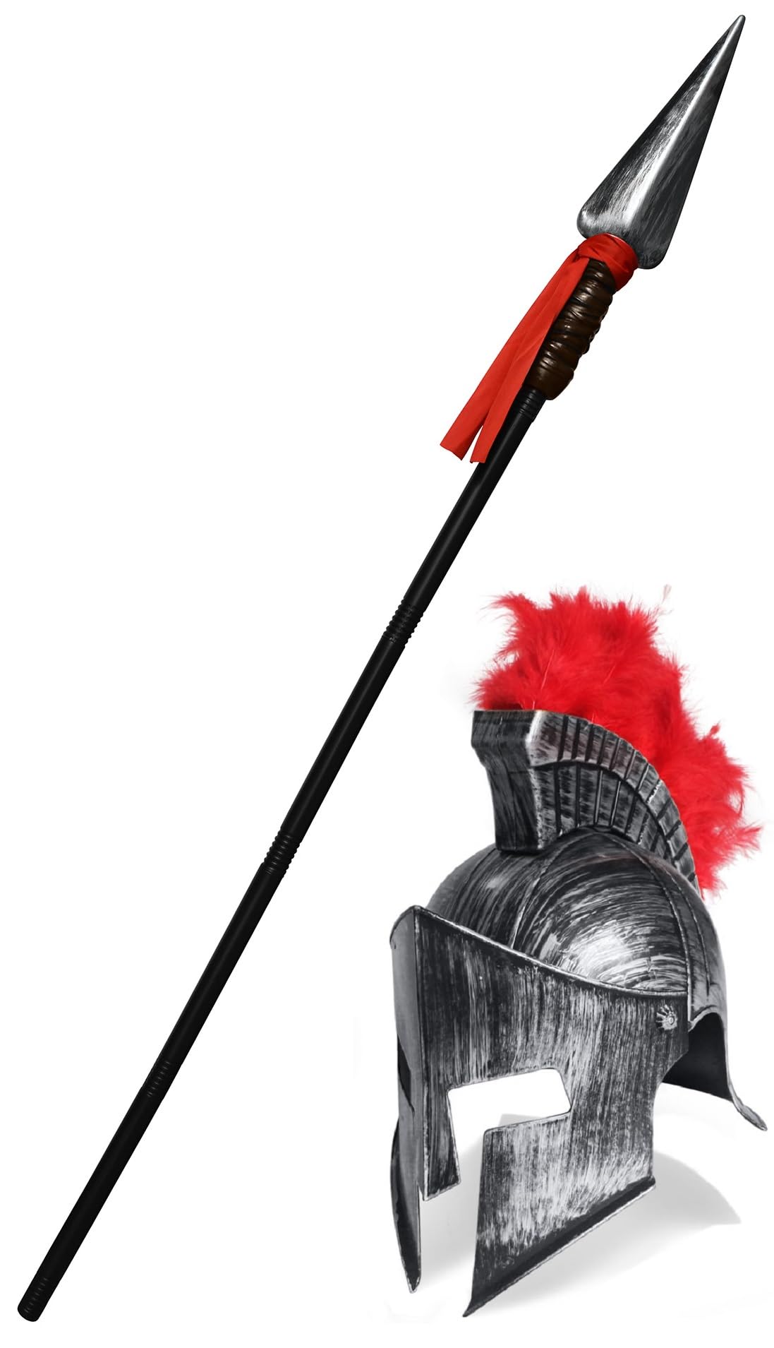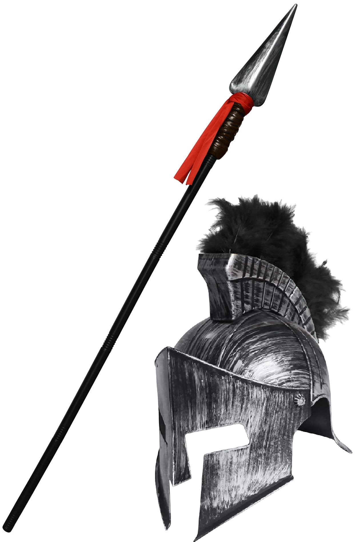 - Versatile Costume Accessories: Enhance your warrior costume with this realistic helmet and plastic spear prop, perfect for Spartan, Roman, or Native American warrior ensembles. Perfect for Men ,Women and Teens. Perfect for Greeks, Romans, Spartans, Vikings, Native, and more!