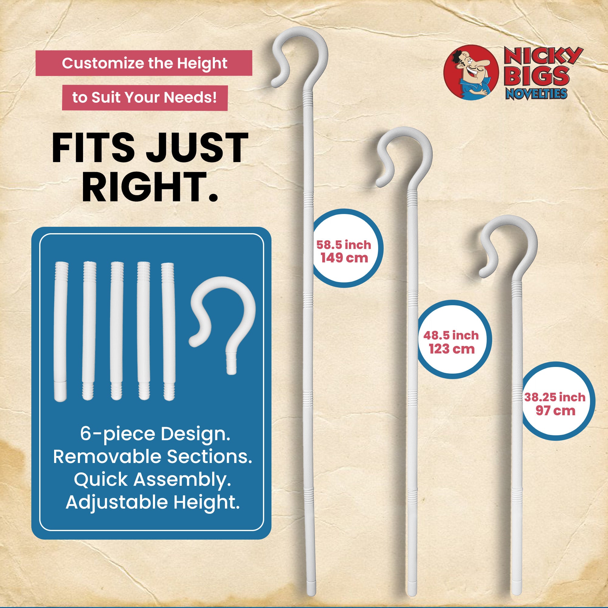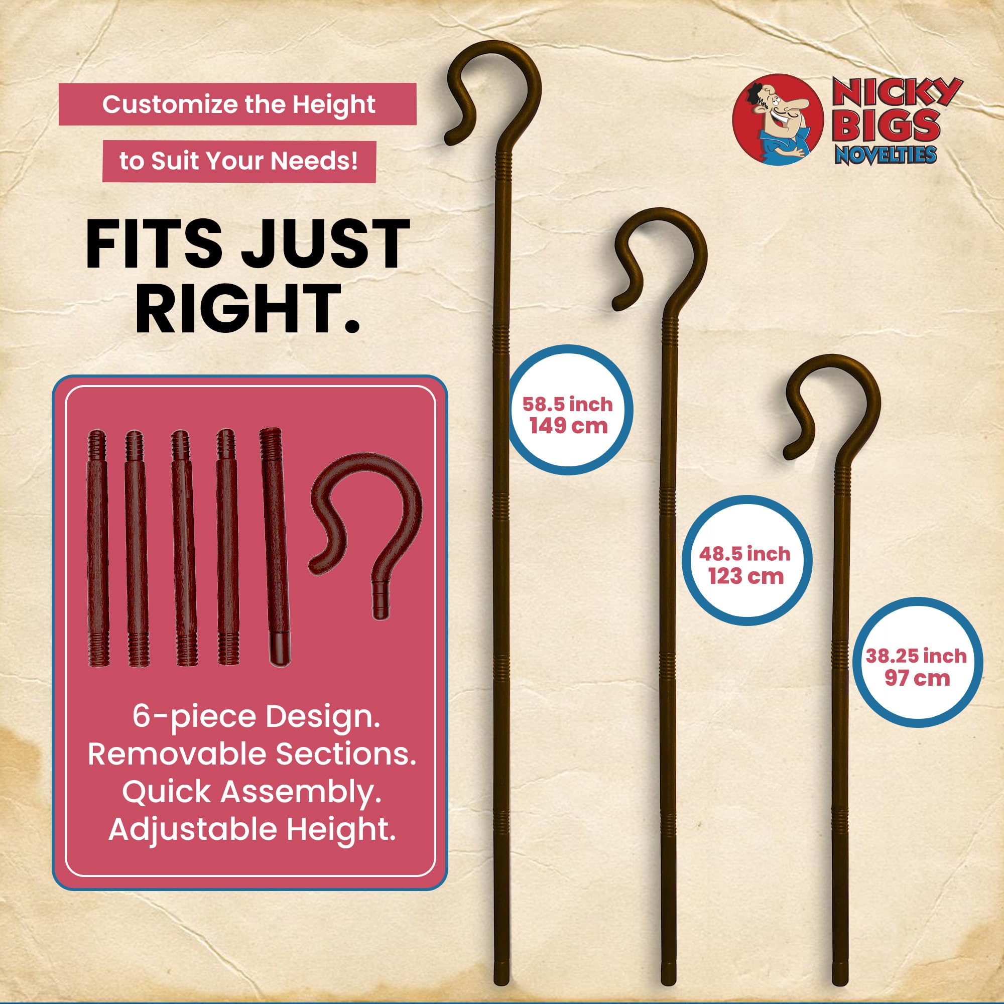- ADJUSTABLE HEIGHT, EASY ASSEMBLE: Adjust the height of this shepherd hook costume to 58.5", 48.5", or 38.25" by removing sections for ultimate flexibility. Whether you need a shepherds hook prop for a nativity play or a versatile staff cosplay piece, its six-piece design makes assembly quick and hassle-free.
