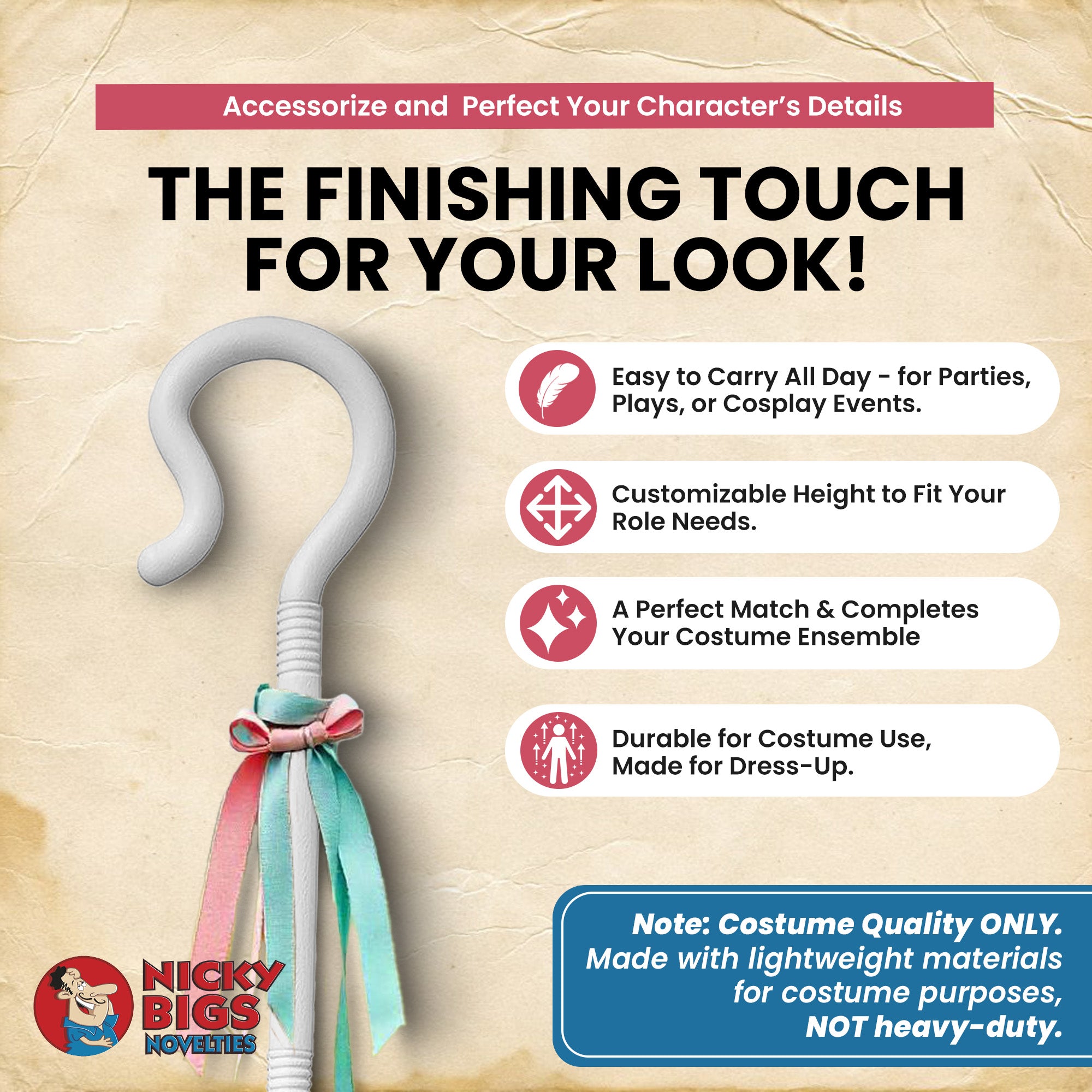 Nicky Bigs Noveltied Plastic Shepherds Hook Prop Staff Cane Walking Stick - Nativity Play Costume Accessory, 59"