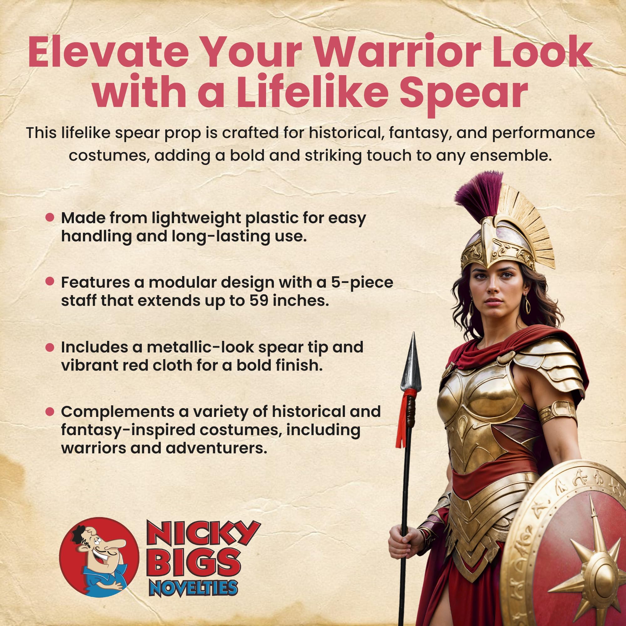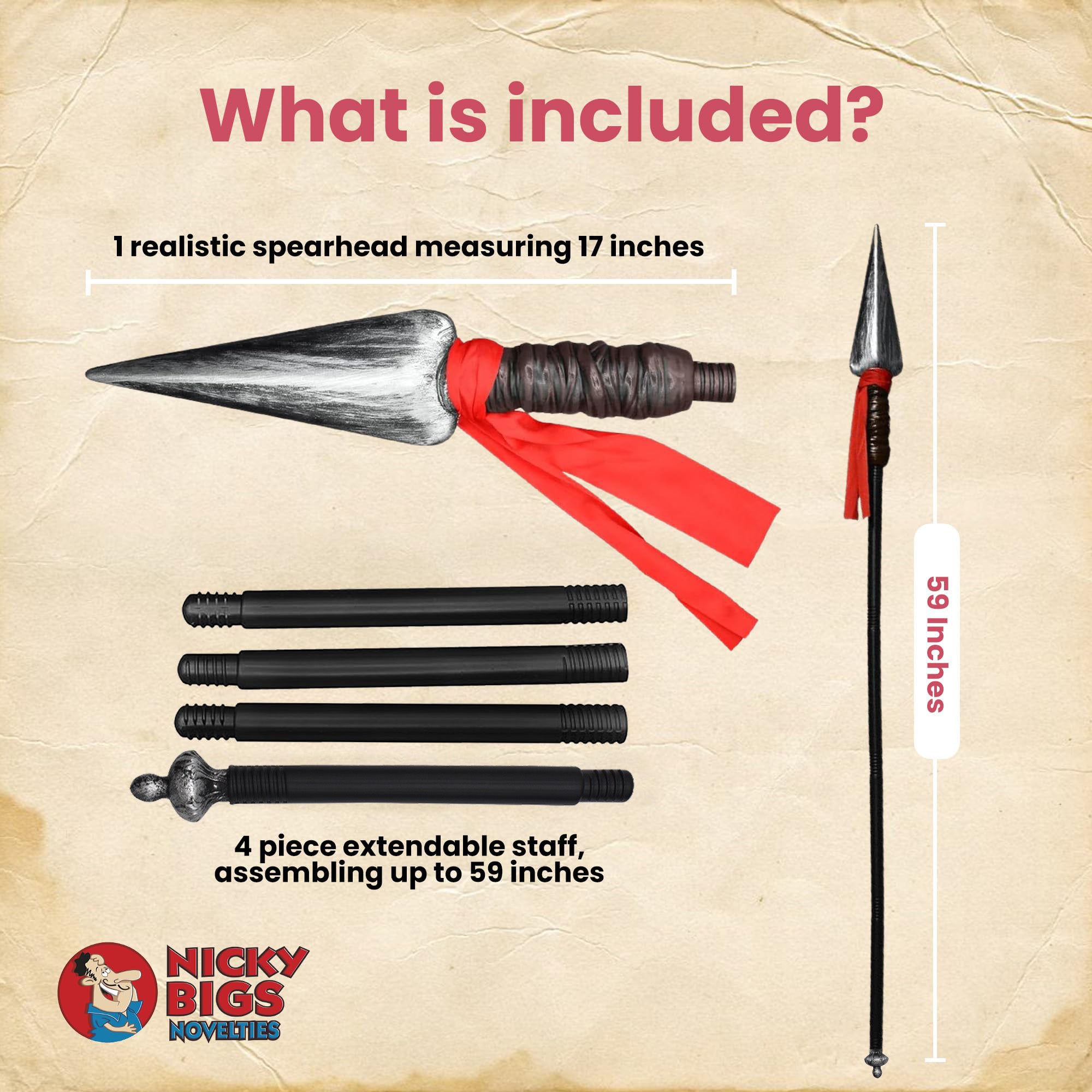 - AUTHENTIC DESIGN WITH REALISTIC DETAILS: Crafted with lifelike accuracy, this spartan spear features a silver faux spearhead and bold red cloth for added flair. Perfect for Spartan warriors cosplay spear, Roman soldiers, or Native American weapons fighters, it adds realism to your costume and stands out at any event.