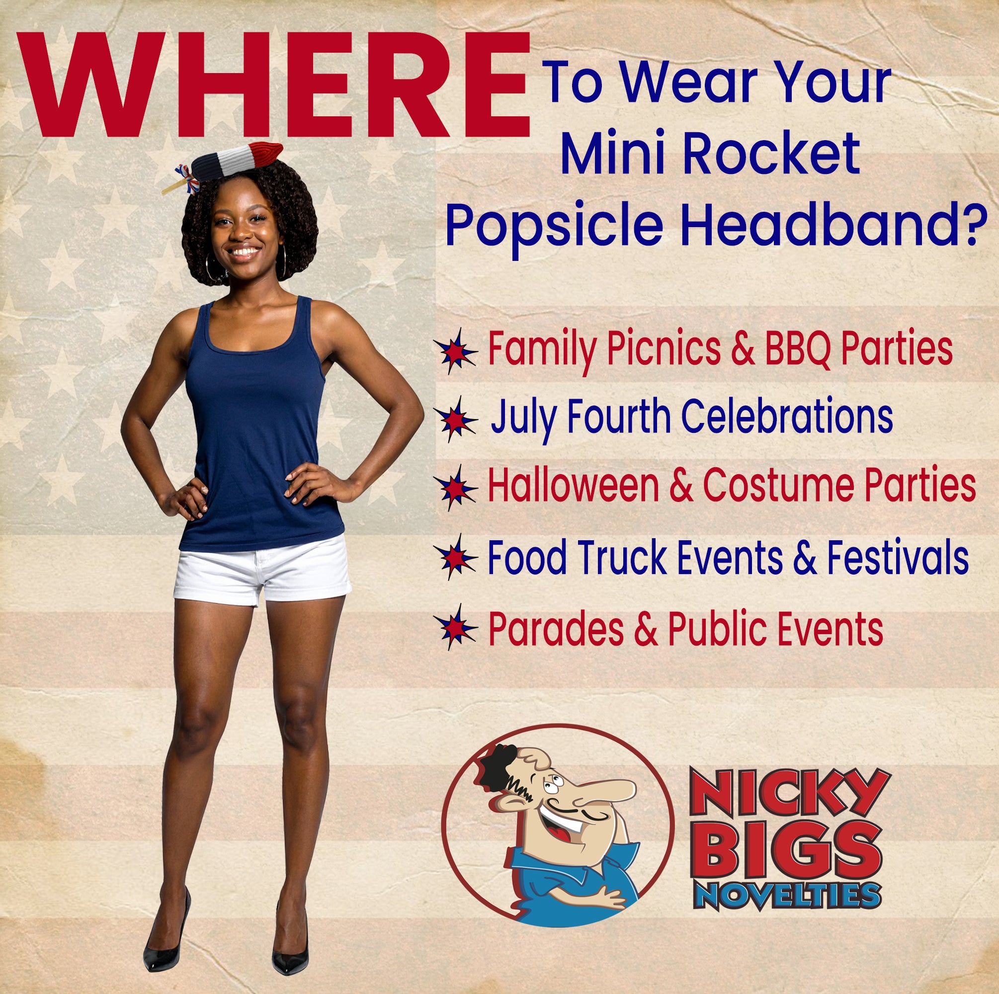 Proudly crafted by Nicky Bigs Novelties—a USA-owned brand powered by the costume experts at Marsinos Costumes—this accessory is part of a century-long legacy of creativity and celebration. Built for comfort and designed for standout style, it’s your go-to headband for Independence Day gatherings, Labor Day fun, Flag Day flair, or just a spirited summer afternoon.