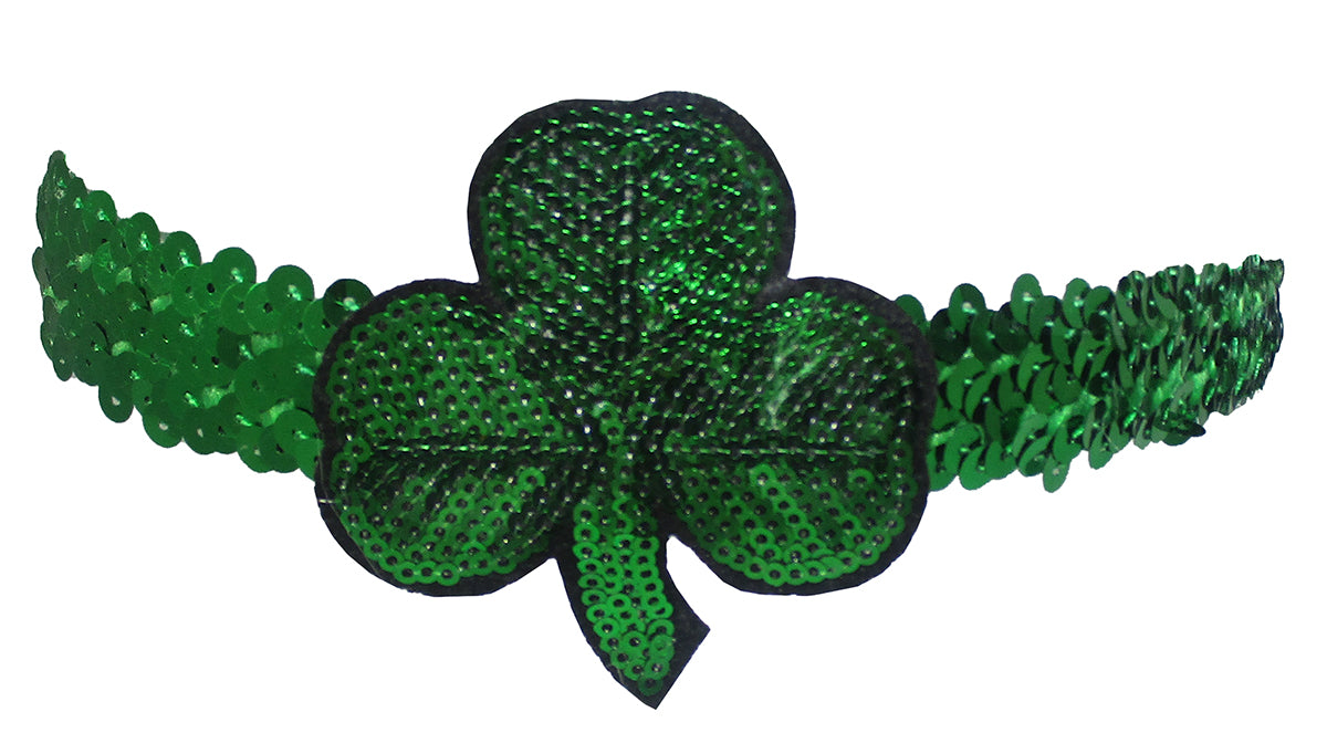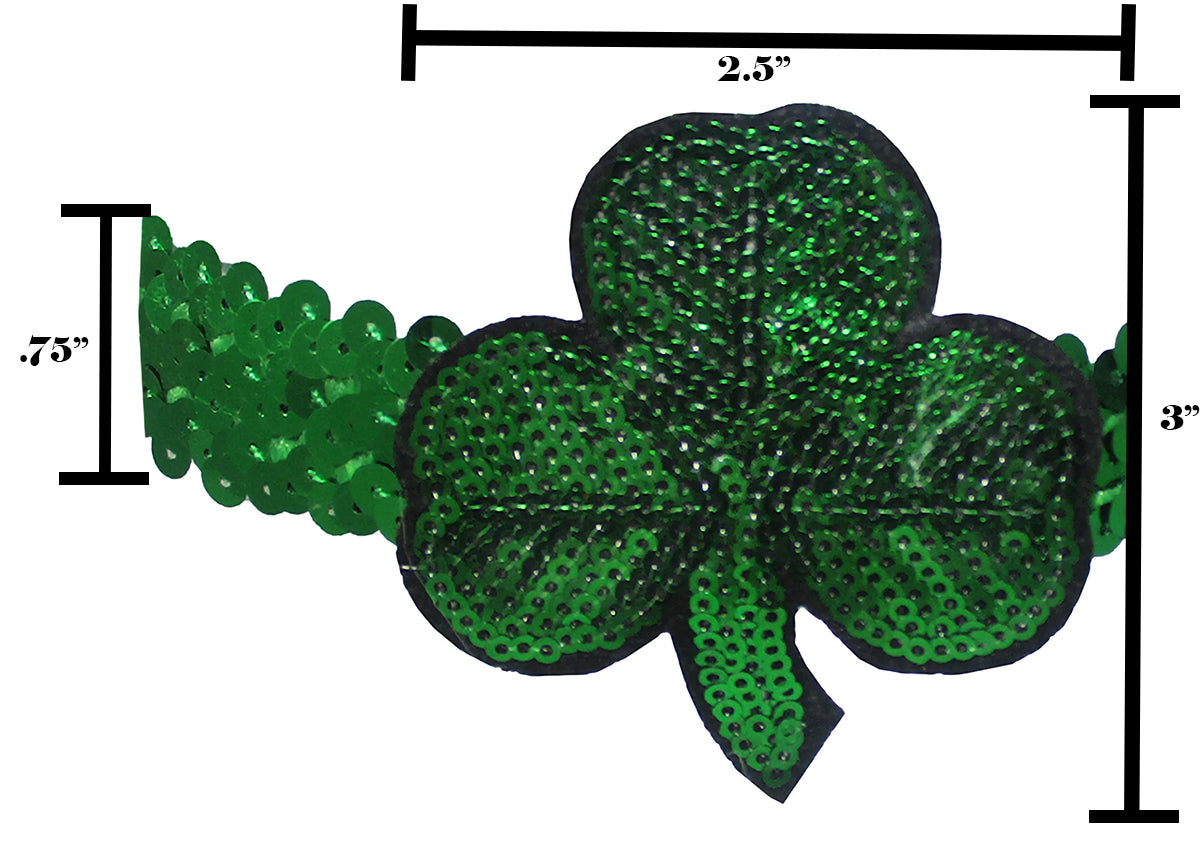 - Green Sequin Elastic Hairband with 3 leaf Clover Makes an excellent Hair Accessory for parties