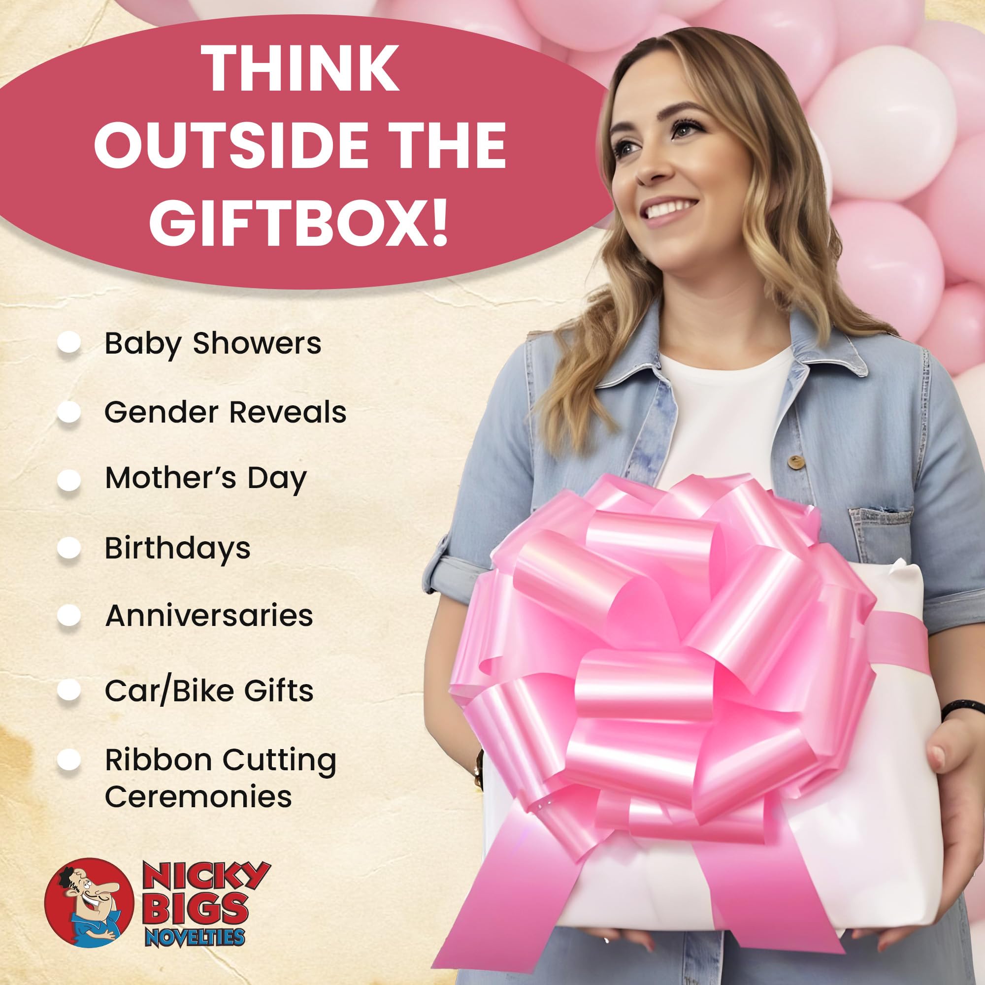 - VIBRANT IRIDESCENT METALLIC PINK COLOR: This big pink bow adds a pop of color to your gift wrapping, making it ideal for occasions like gender reveal parties, baby showers, and birthday celebrations. Whether you need a big pink gift bow for a grand present or a giant pink bow for decorations, this iridescent metallic finish ensures your gift stands out.